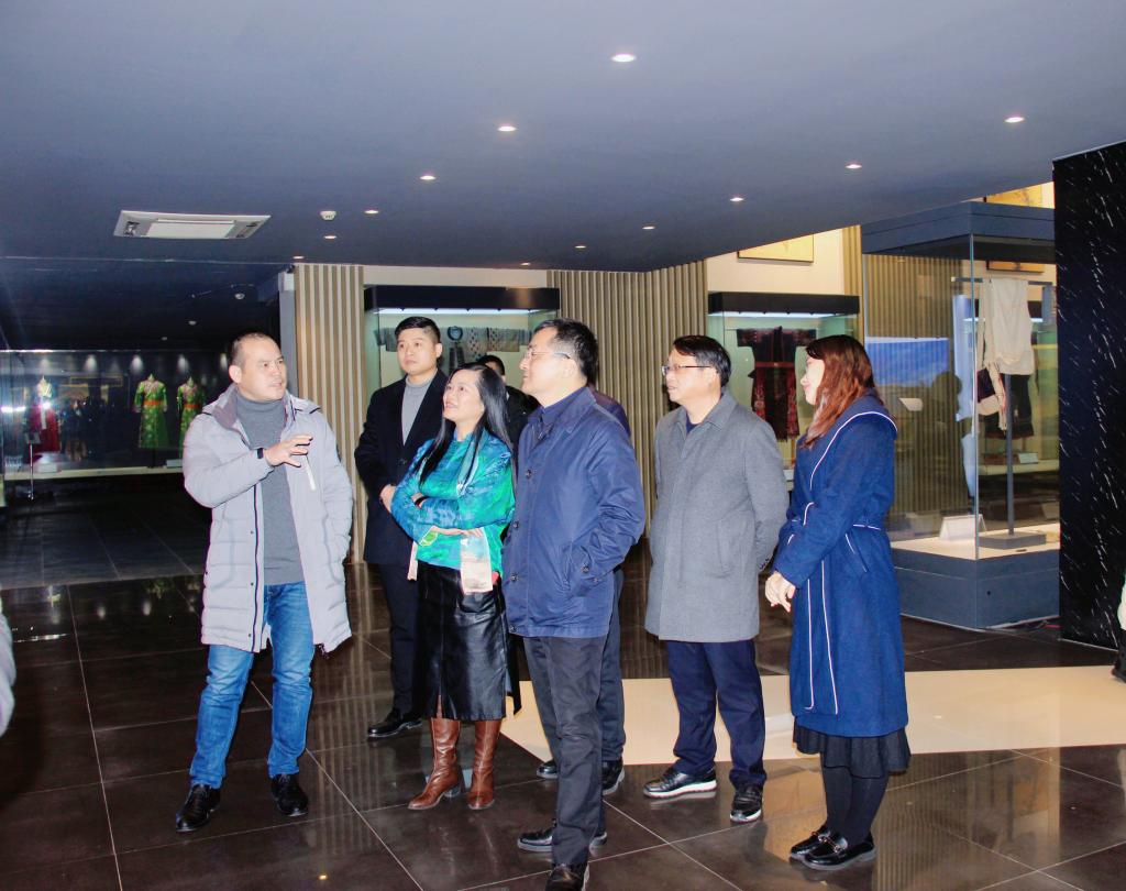 参观过程中,涂燕萍副理事长和唐新强副书记一路陪同向王强副市长介绍了我校中华服饰博物馆一直以来坚持以服务教学、服务科研、服务社会、服务地方产业发展、传承民族服饰文化为理念,积极提供服装教学实景场所,举办“服饰文化科普周”、“传统纺织刺绣体验”、“国画与服饰学术讲座”等各项活动,并积极支持校内外研究者开展相关服饰研究工作。并向王强副市长详细报告了我校人才培养情况,服务青山湖区、共青城市、于都县、宁都县等省内纺织服装产业群的情况。