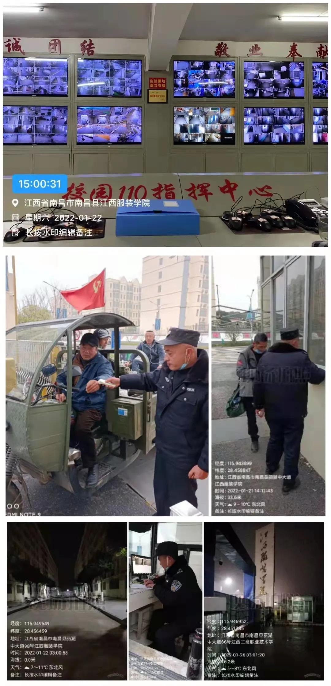 保卫人员24小时轮班坚守,守护着校园的安全。门岗人员认真对进入校园的外来人员进行身份核验和登记,严格按照防疫要求进行扫码、测温;巡逻人员穿梭于校园的楼栋之间,仔细检查着每一扇门窗;监控中心的同志紧盯着大屏幕,不放过每一个角落;夜巡人员每晚在校园巡查不少于4次,其中一次在凌晨3点到5点之间....他们把人防、物防、技防有机地结合起来,为校园筑起了一道坚固的守护墙。