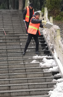 雪,象征着纯洁,雪,预示着丰收。对于不同的人来讲,雪可能代表着不同的含义,但是对于我们的后勤保障处的保洁人员来讲,雪象征的是号令,寒风冰雪阻挡不住后勤保障人员劳动的脚步,冒着严寒,他们冲在清晨的寒意中,开始了清雪的工作,为的就是让全校师生有一个畅通的出行环境。