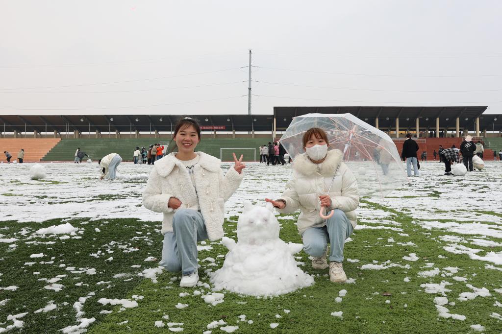 今日,江西服装学院迎来了开学后的第一场雪