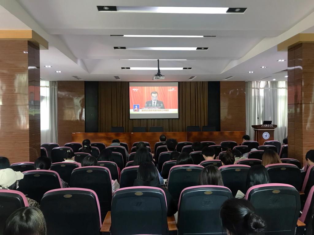 新闻中心讯3月4日和3月5日,全国政协十三届五次会议和十三届全国人大五次会议先后在北京开幕。江西服装学院师生高度关注“两会”召开,及时学习贯彻会议精神。3月5日上午9:00,校党委组织当天在校值班校领导、各学院党总支书记、辅导员,各学院部分学生干部100余人在行政楼一楼报告厅观看了全国人大十三届五次会议开幕式,聆听国务院总理李克强作《政府工作报告》。同时,各学院分别安排分会场组织师生收看了大会盛况,并通过电视、网络、广播、手机客户端等渠道,收看收听“两会”盛况,了解“两会”动态,关注“两会”热点,认真学习和深刻领会“两会”会议精神,及时组织师生畅谈感想与体会。