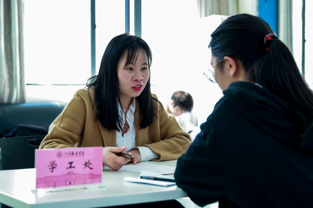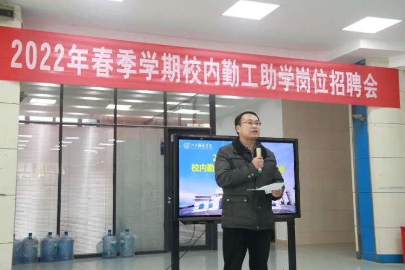 新闻中心讯3月8日下午,我校在思贤楼二楼大厅举办2022年春季学期校内勤工助学招聘活动,学校提供勤工助学岗位的用人部门到场参与现场招聘,校党委副书记唐新强莅临招聘现场,招聘活动吸引了百余名学生参加,招聘会由学生资助管理中心主任余晓萍主持。