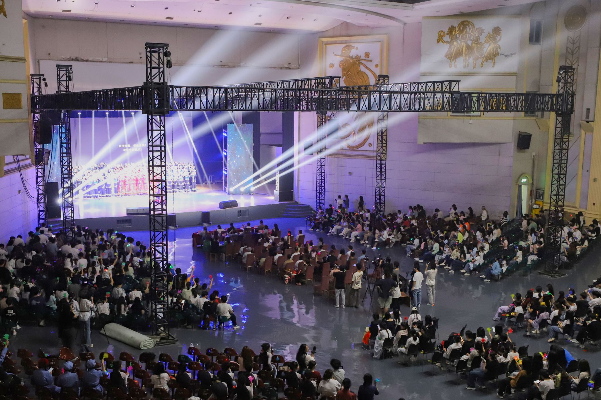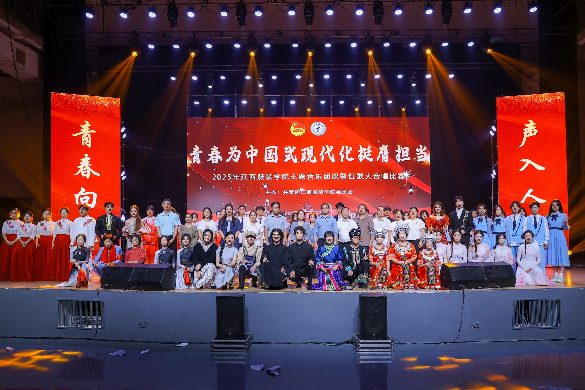 新闻中心讯(文/樊翔 图/钟宏鹏 黄梓翔)为深入贯彻党的二十大精神,致敬“红五月”的革命传统与奋斗精神,弘扬红色文化,赓续红色基因,以青春之力营造积极向上的校园文化氛围。5月27日晚,“青春为中国式现代化挺膺担当”主题音乐团课暨红歌大合唱比赛在我校霓裳宫举行。校党委书记林井萍、党委副书记唐新强、校长助理马国照以及江西应用科技学院团委书记张荆莅临本次活动,党委组织部、宣传部、学生工作部、校团委以及各学院党委负责人和1800余名师生共同在现场观看了本次主题团课暨红歌大合唱比赛。