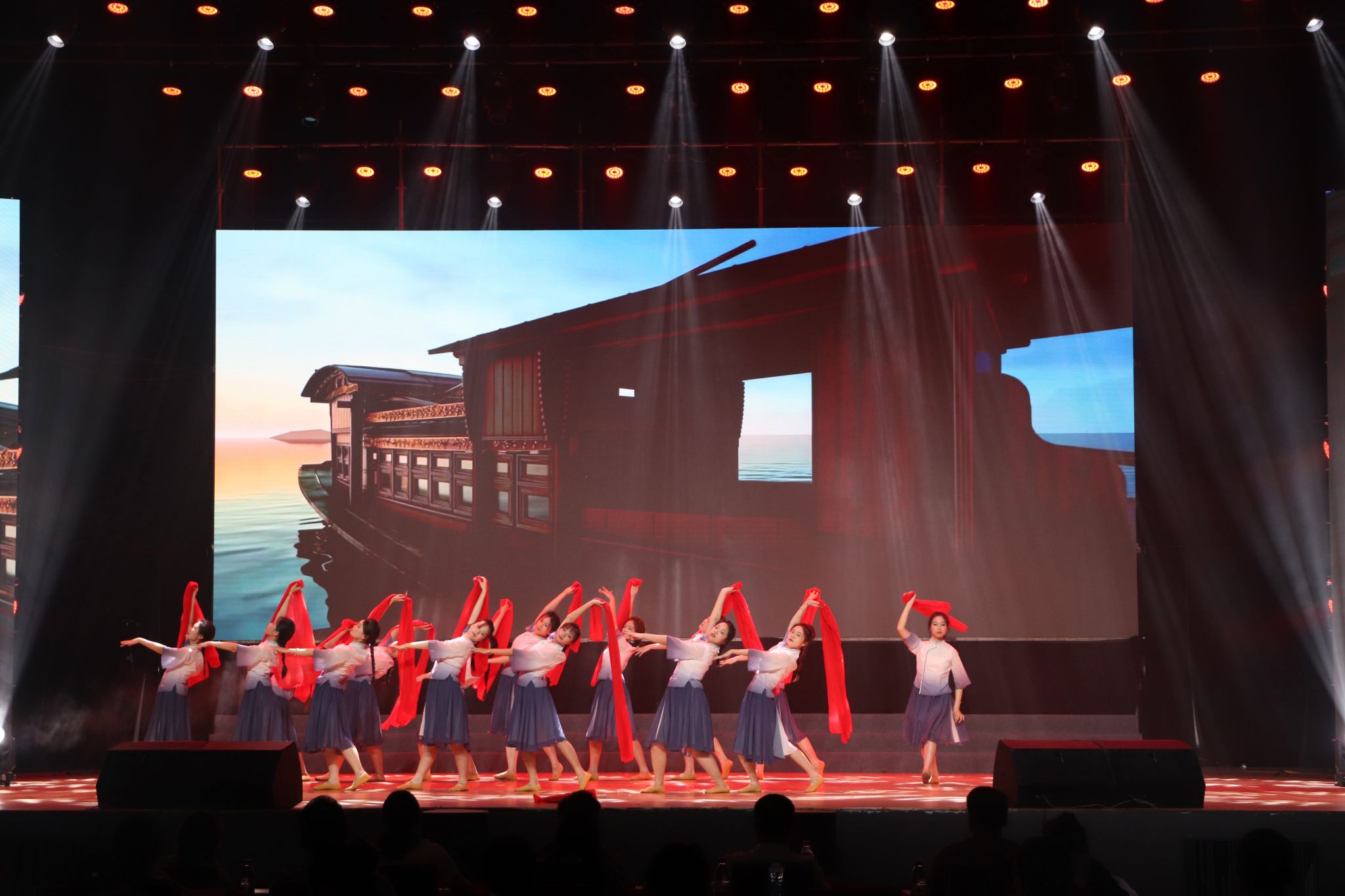 进入第二阶段后,各学院纷纷亮出精心编排的自选节目,涵盖话剧、舞蹈、舞台剧等多种形式。艺术设计学院带来的话剧《破晓》,通过多维艺术表现手法,展现中国智造的飞速发展;人文学院的舞蹈《红船》以肢体语言描绘历史长河中的信仰传承;商学院的《灯火里的中国》以柔美舞姿勾勒出万家灯火下的盛世图景;服装设计学院的话剧《星火长明》融合非遗技艺与现代科技,诠释传统与创新的碰撞;服装工程学院的《小河淌水1952》以舞蹈再现峥嵘岁月;时尚传媒学院的《烟雨落霓裳》尽显古典之美;大数据学院的《美丽中国》则以欢快节奏舞动新时代中国的蓬勃生机。