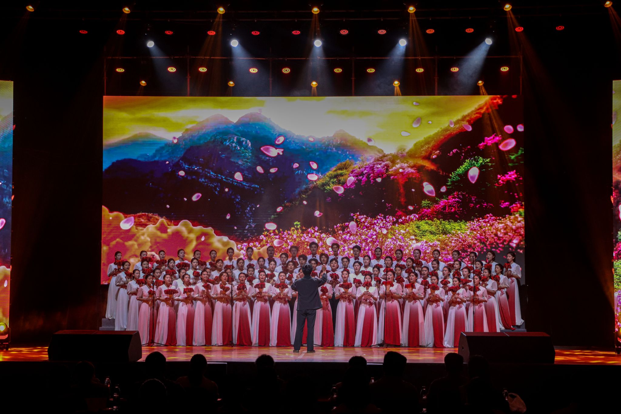 晚上六时整,随着主持人的精彩开场,比赛正式拉开帷幕。本次比赛分为两个阶段:第一阶段为必选红歌合唱,第二阶段为自选节目展示。来自全校各学院的七支代表队依次登台,用激情澎湃的歌声和创意十足的表演,展现了江服学子对祖国的热爱与对理想的坚守。