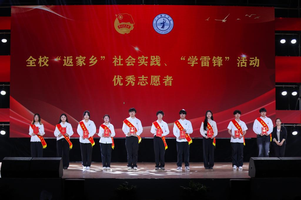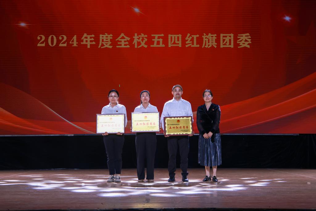 与会领导为获得2024年度“返家乡”社会实践、“学雷锋”活动优秀志愿者、五四红旗团支部、优秀共青团员、十佳基层团务工作者、优秀共青团干部、大学生自强之星及标兵、青年五四奖章、五四红旗团委等荣誉的集体和个人颁发奖牌、证书。