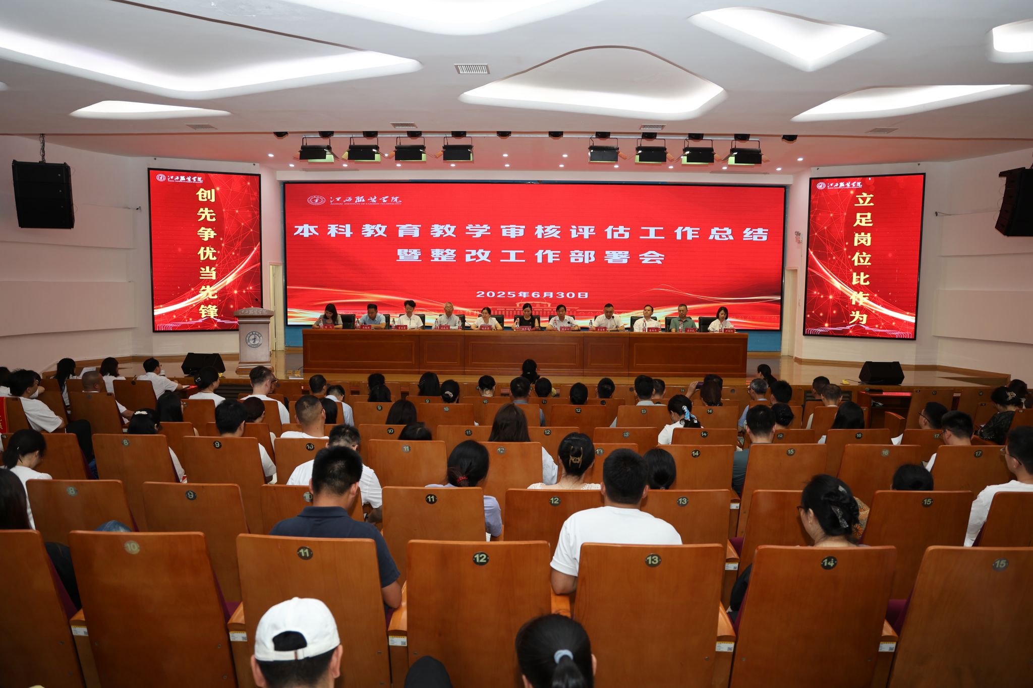 新闻中心讯(文/图 万强)为全面总结我校在本科教育教学审核评估中的经验与成效,表彰评估工作中表现突出的单位和个人,全面部署下一阶段的整改工作任务,进一步提升我校本科教育教学质量和办学水平,6月30日上午,我校在思贤楼报告厅召开本科教育教学审核评估工作总结暨整改工作部署会。理事长涂燕萍、校长薛家宝、党委书记林井萍等全体校领导出席会议。党委副书记、副校长李宝君主持会议。