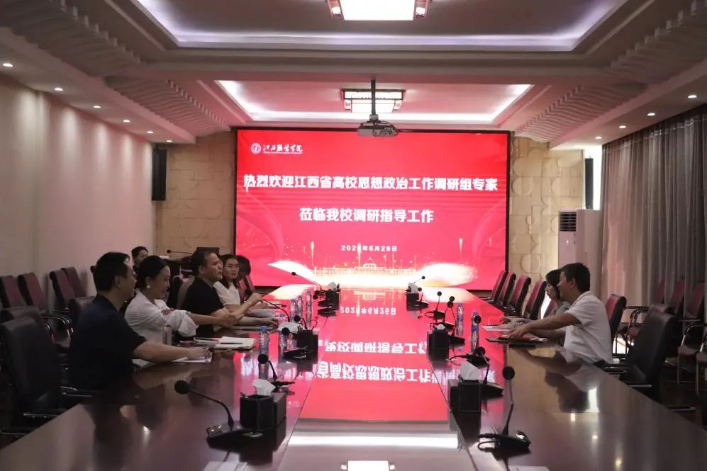 新闻中心讯(供稿/党委学生工作部)6月26日下午,江西省高校思想政治工作调研组戴益信主任一行莅临我校调研指导工作。我校党委书记林井萍会见了调研组一行,党委副书记、监事长唐新强主持交流活动。相关部门、学院负责人参加座谈会。