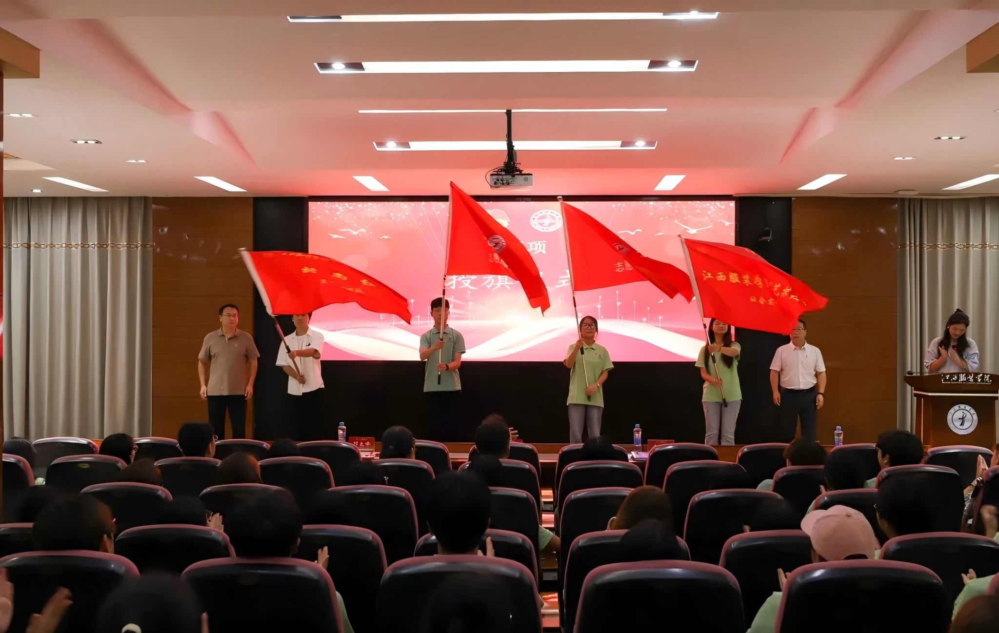 新闻中心讯(供稿/校团委)为深入学习贯彻习近平新时代中国特色社会主义思想,全面贯彻落实党的二十大和二十届二中、三中全会精神,引领广大青年学生在社会实践中挺膺担当,以青春之力助推中国式现代化建设。6月23日上午,我校在行政楼报告厅举行2025年江西服装学院大学生暑期社会实践暨西部计划出征仪式。校党委副书记唐新强出席仪式,党委宣传部、学工处、校团委等部门负责人,校团委专职团干部、各实践队伍带队老师及全体实践团队成员参加了本次活动。活动由校团委书记孟安然主持。