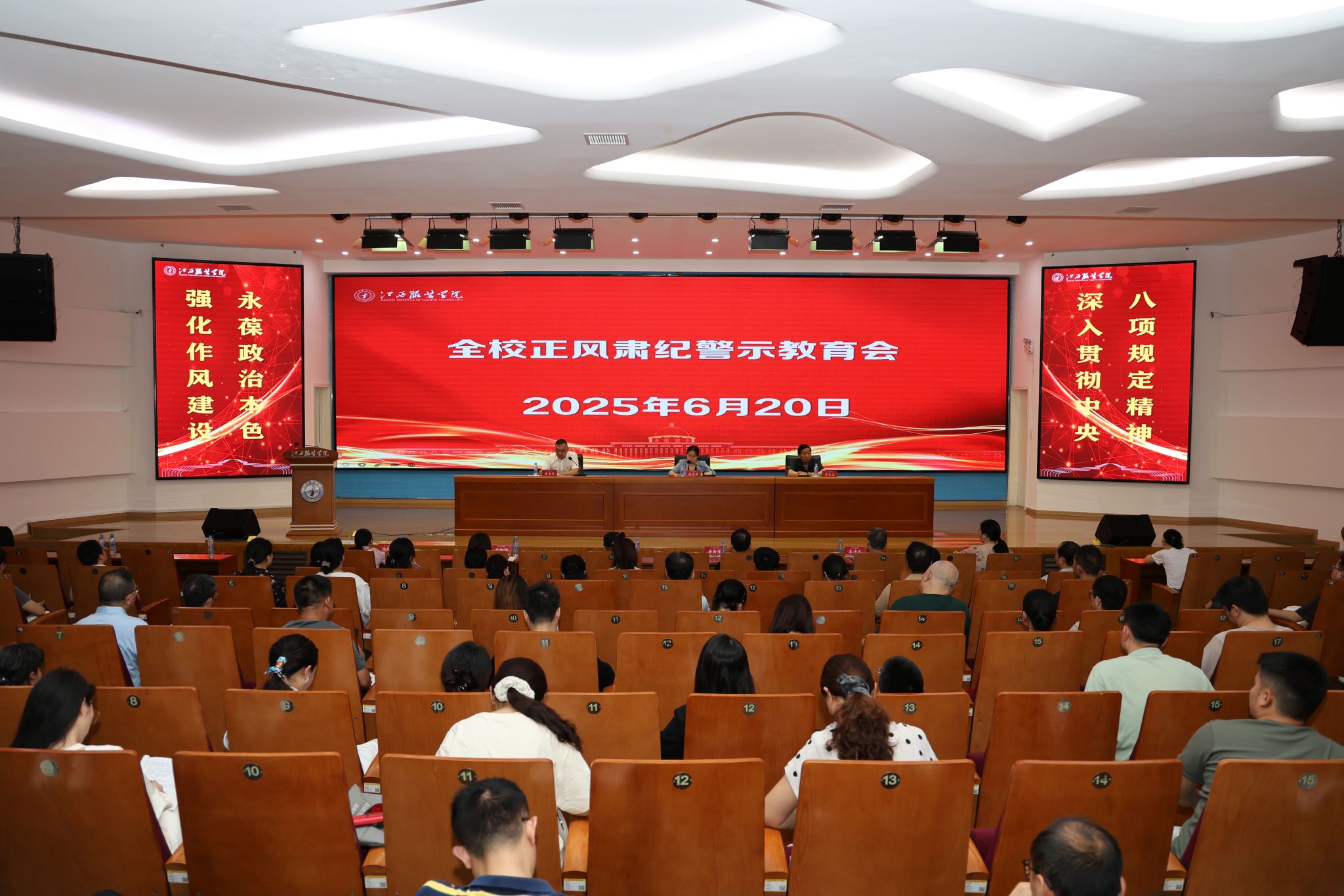 会上集中观看了警示教育片,薛家宝传达学习了全省正风肃纪警示教育会和全省教育系统正风肃纪警示教育会精神、关于集中整治违规吃喝文件精神,通报了学习教育期间全国和江西省典型案例,李宝君报告了学校深入开展集中整治工作的总体情况。