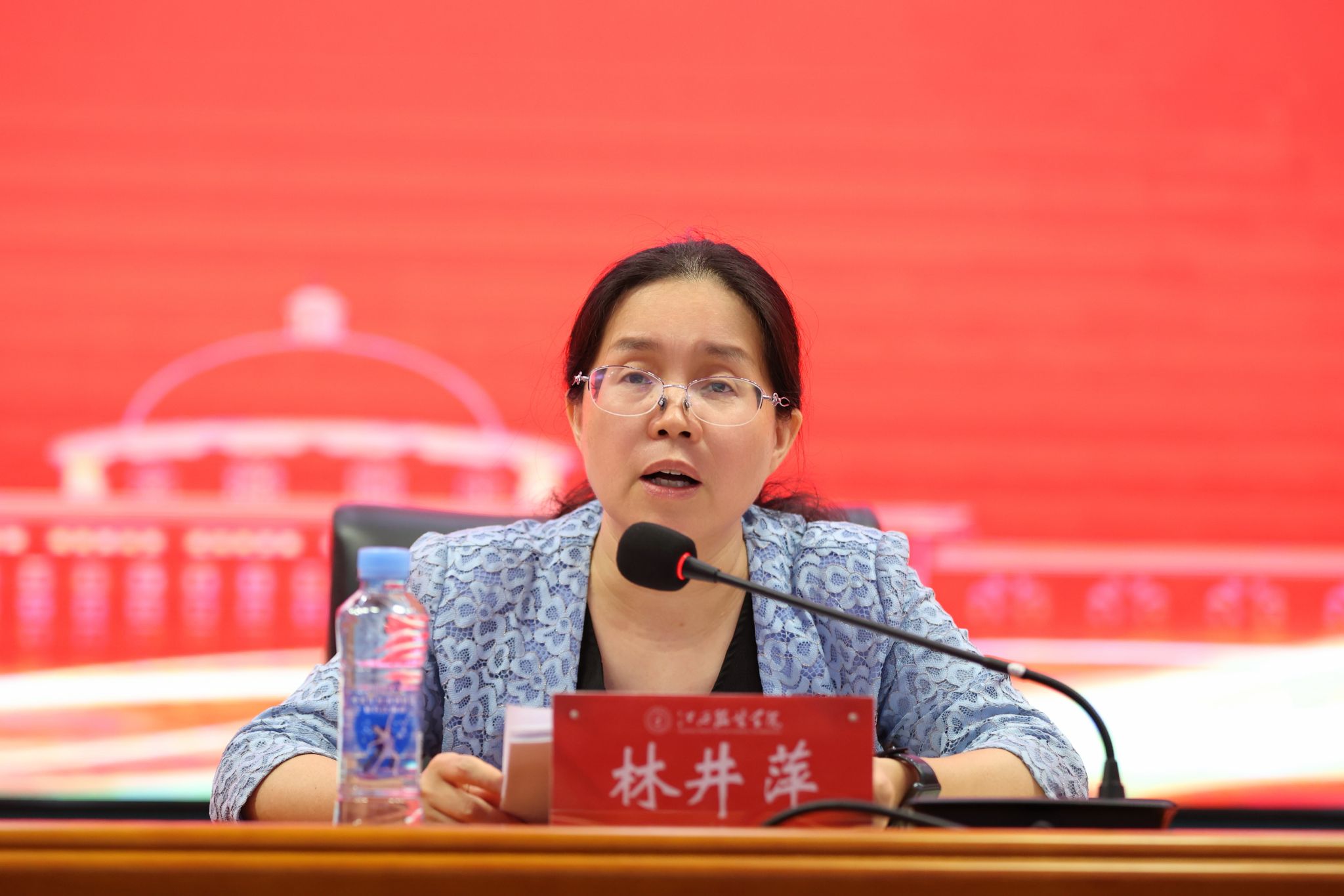 林井萍强调,全校党员干部要深入学习贯彻习近平总书记关于加强党的作风建设的重要论述和中央八项规定及其实施细则精神,坚持问题导向和严的标准,扎实开展学习教育,确保学有质量、查有力度、改有成效。林井萍要求,要强化作风建设,推进学习研讨入脑入心,不断深化理论武装,深学细悟中央八项规定及其实施细则精神,准确把握其蕴含的价值导向和实践要求;要抓好问题查摆,真治真改真碰硬,党员干部要对照问题清单,强化自查自纠和整改落实,推动整治与发展深度融合,切实解决制约学校事业发展的顽瘴痼疾;要坚持以案为鉴,检身正己,必须始终把筑牢党性根基摆在首位,时刻拧紧理想信念这个“总开关”,主动净化社交圈、生活圈、朋友圈;要压实主体责任,强化压力传导,各级党组织要突出政治建设,落实全面从严治党要求,推进作风建设与业务工作同部署、同推进;要强化日常监督,凝聚多维合力,纪检监察部门要压实监督责任,紧盯“关键少数”和重点岗位,坚持抓早抓小、防微杜渐,推进阳光治校,拓宽公开渠道,营造风清气正的良好生态,为学校高质量发展提供坚强保障。