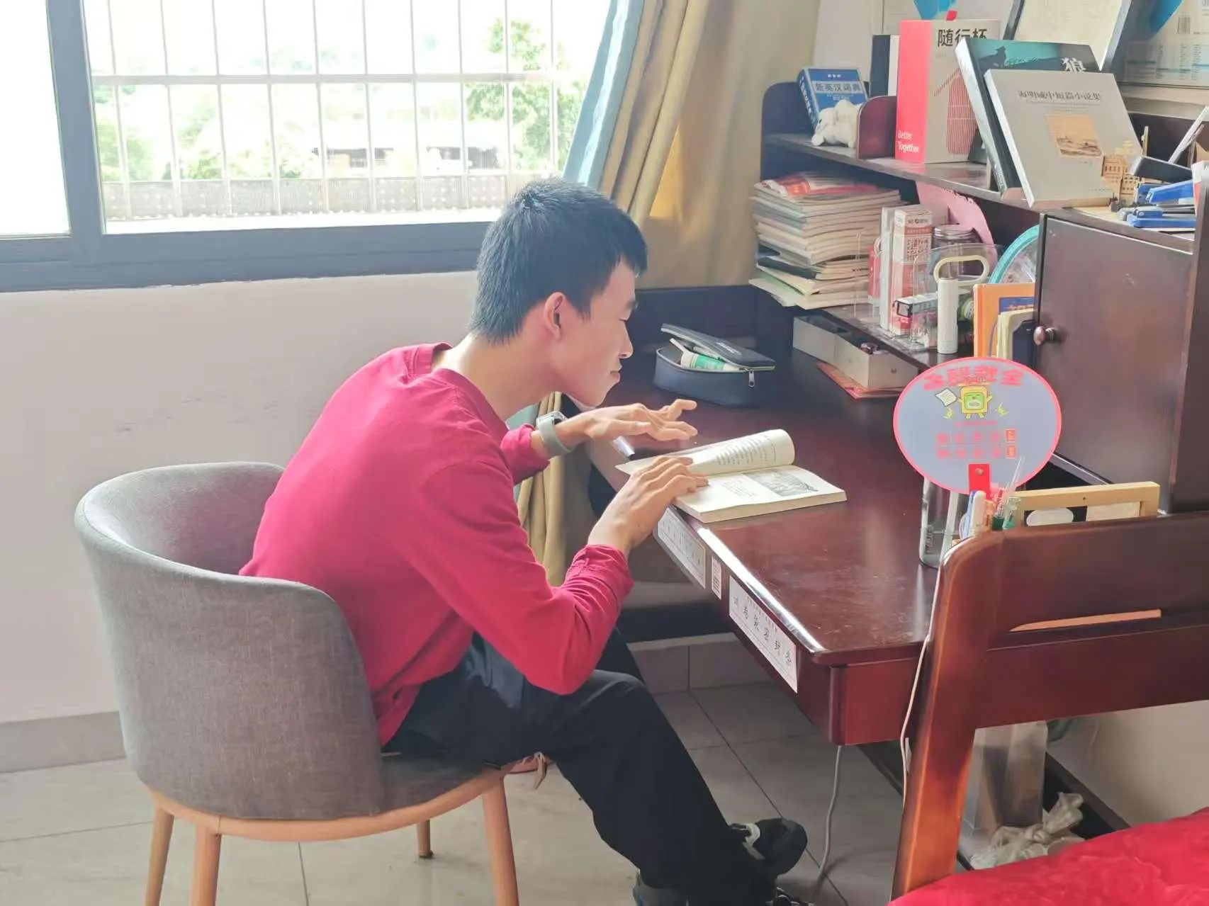 童达内的求学之路异常艰辛,每一步都凝聚着超乎常人的坚韧与毅力。正如他的父亲所言:“为了配合治疗,达内常年辗转于各大医院,真正在校学习的时间远少于同龄人。而因严重的肌肉萎缩,连最简单的握笔写字都变得异常艰难——他只能用尚存微弱力量的右手紧紧夹住笔杆,依靠手腕的微弱发力,一笔一画艰难书写。”无数个深夜,他都在小小的书桌前,以笔为刃,以梦为灯,镌刻着属于自己的未来。终于在2025年高考中,他以超过湖南省历史类本科线29分的优异成绩,被我校录取。这份成绩单,不仅是一场考试的胜利,更是生命在困境中不屈奋斗的见证。