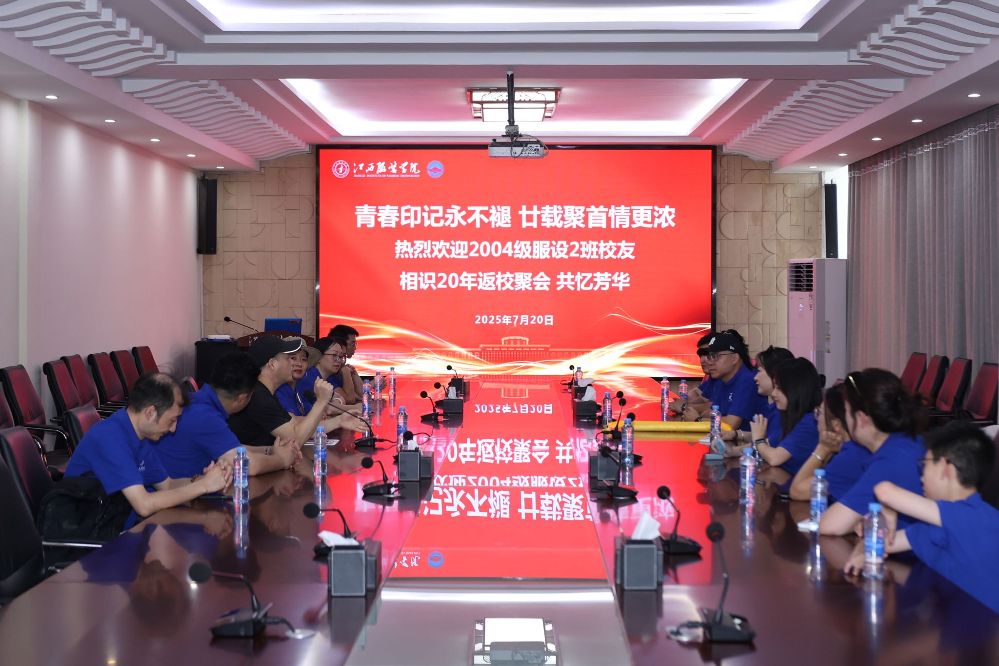 新闻中心讯(供稿/ 江春红)7月20日,江服迎来了一批特殊的“归家人”——我校2004级服装设计2班的校友跨越山海,从江苏、重庆、山西、浙江、广州、湖北、河北等地重返母校,共庆相识20周年,共叙同学情、师生情、母校情。校党委副书记唐新强出席交流会,校友服务中心副科长江春红参加会议。