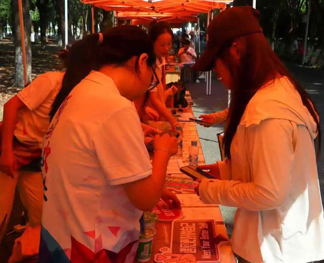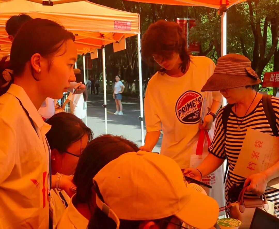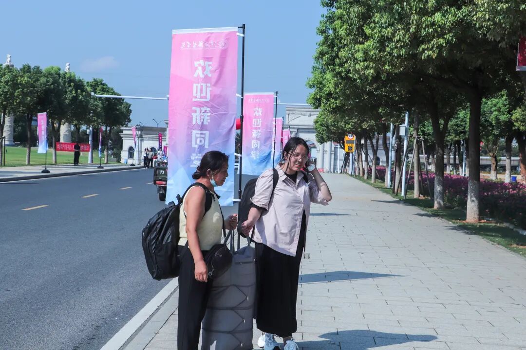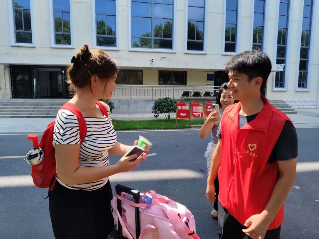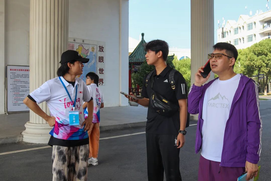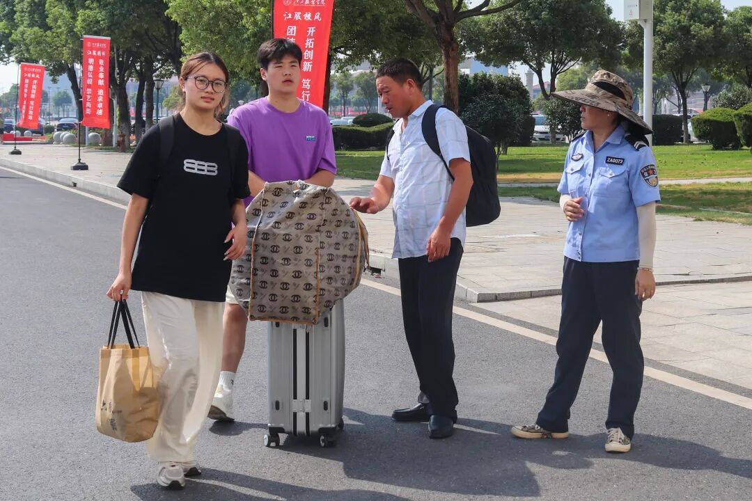 在炎热的天气里,一抹抹身着志愿服的身影格外鲜活。他们顶着骄阳穿梭奔走,额间汗珠滚落,衣衫渐渐被汗水浸透,却始终笑意盈盈:主动帮新生提拎行李、为家长指引报到路线,用最热忱的双手、最温暖的笑容,把来自江服的关怀,变成新生踏入校园的第一份感动。