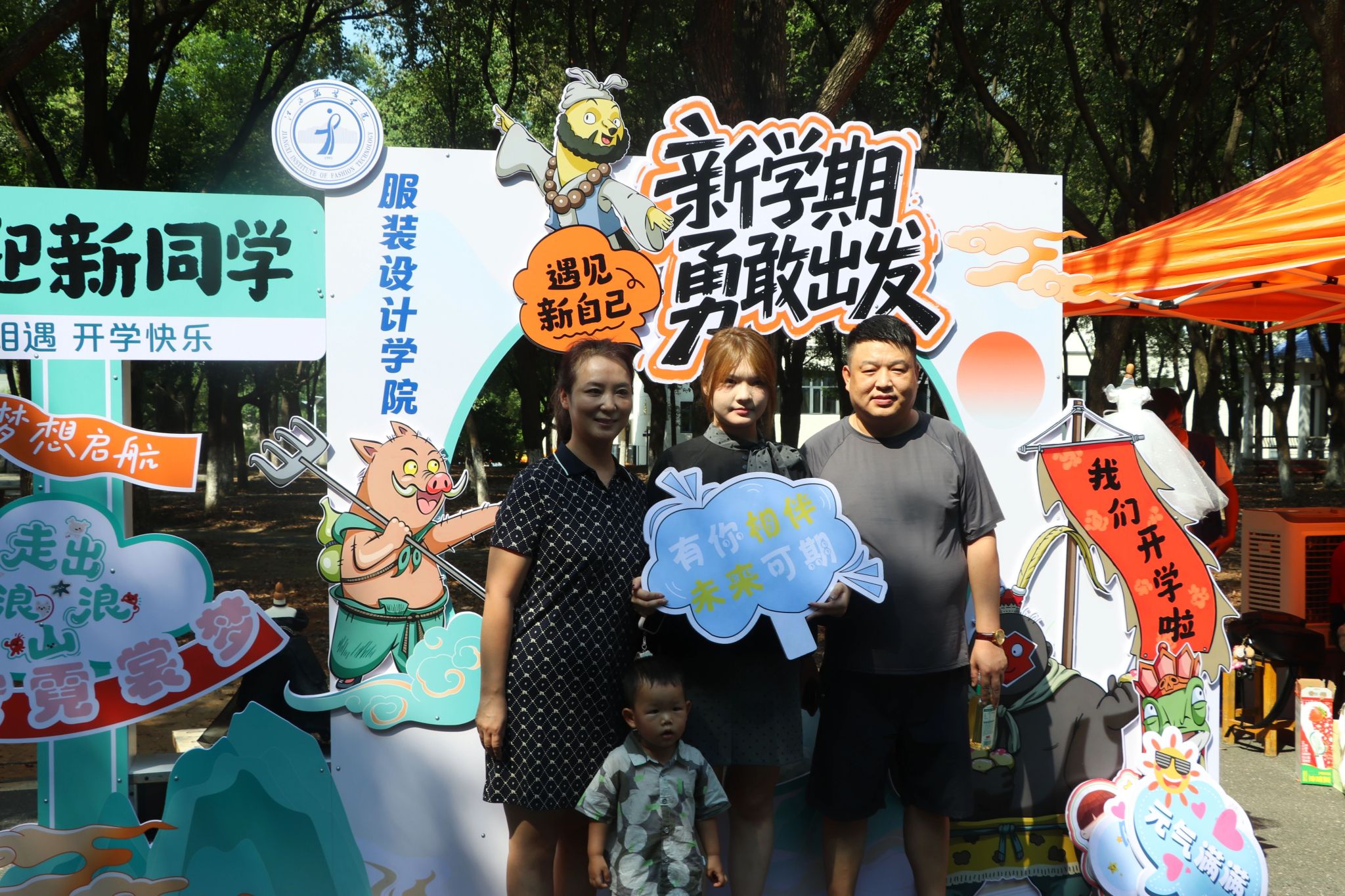 一踏入校园,萌新及家长便能感受到浓浓的迎新氛围。一条条横幅满怀热情、一面面彩旗迎风招展、一块块展板沿途而立,创意十足的拍照打卡区在校园内随处可见,全方位营造热烈、温馨的开学氛围。