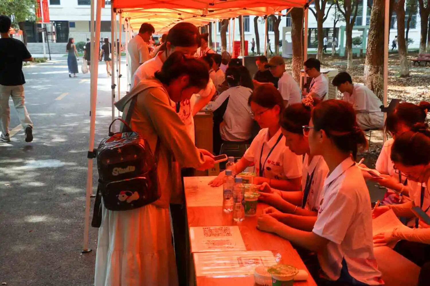 后勤处为所有新生和家长提供免费的解暑绿豆汤,并提供专门的休息室,以供学生及家长小憩;校医务室备足相关药品,安排专人在迎新现场值班值守,确保基础性医疗服务保障到位;