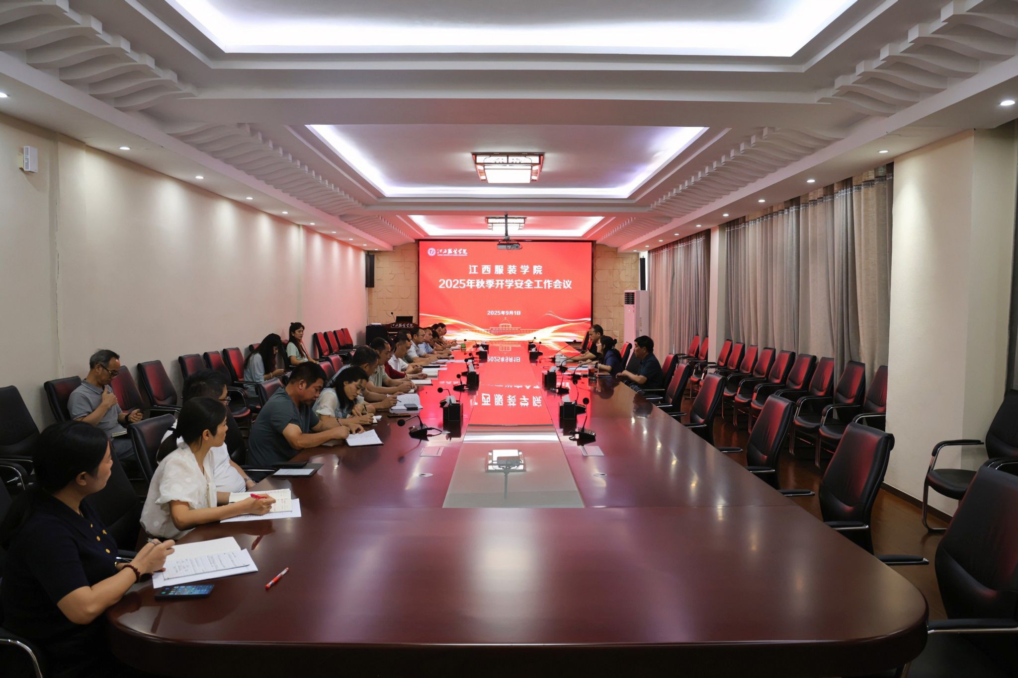 新闻中心讯(供稿/保卫处)为贯彻落实省教育厅2025年全省秋季开学校园及周边治安防范视频会议精神,切实做好秋季学期及新生报到期间的安全稳定工作,保障新学期各项工作有序开展,切实维护师生安全。9月1日下午,学校在行政楼二楼会议室召开了2025年秋季学期开学安全工作会议。校党委书记林井萍、校长薛家宝出席会议并讲话,相关职能部门负责人、各二级学院党委(总支)负责人参加了会议。会议由党委副书记唐新强主持。