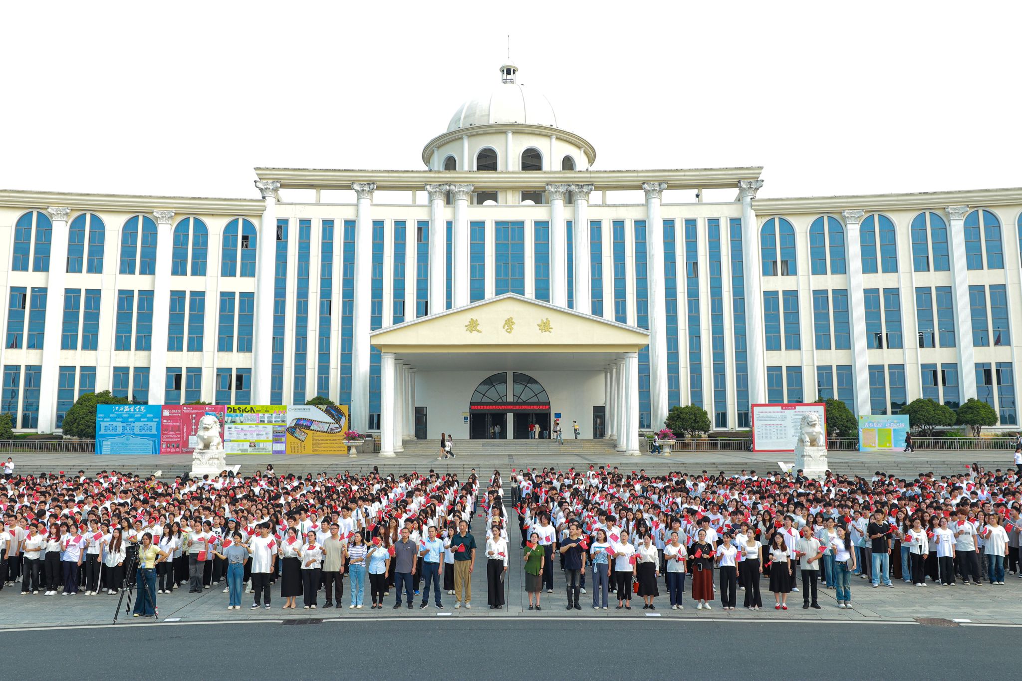 全体师生共同合唱《歌唱祖国》,激昂的旋律响彻校园,将对祖国的祝福、对青春的期许推向高潮。此次活动既是对中华人民共和国成立76周年的庄重礼赞,也是一堂深刻的青年思想引领课,彰显了江西服装学院师生“青春向党、报国为民”的坚定信念,为学校培养担当民族复兴大任的时代新人注入强劲动力。