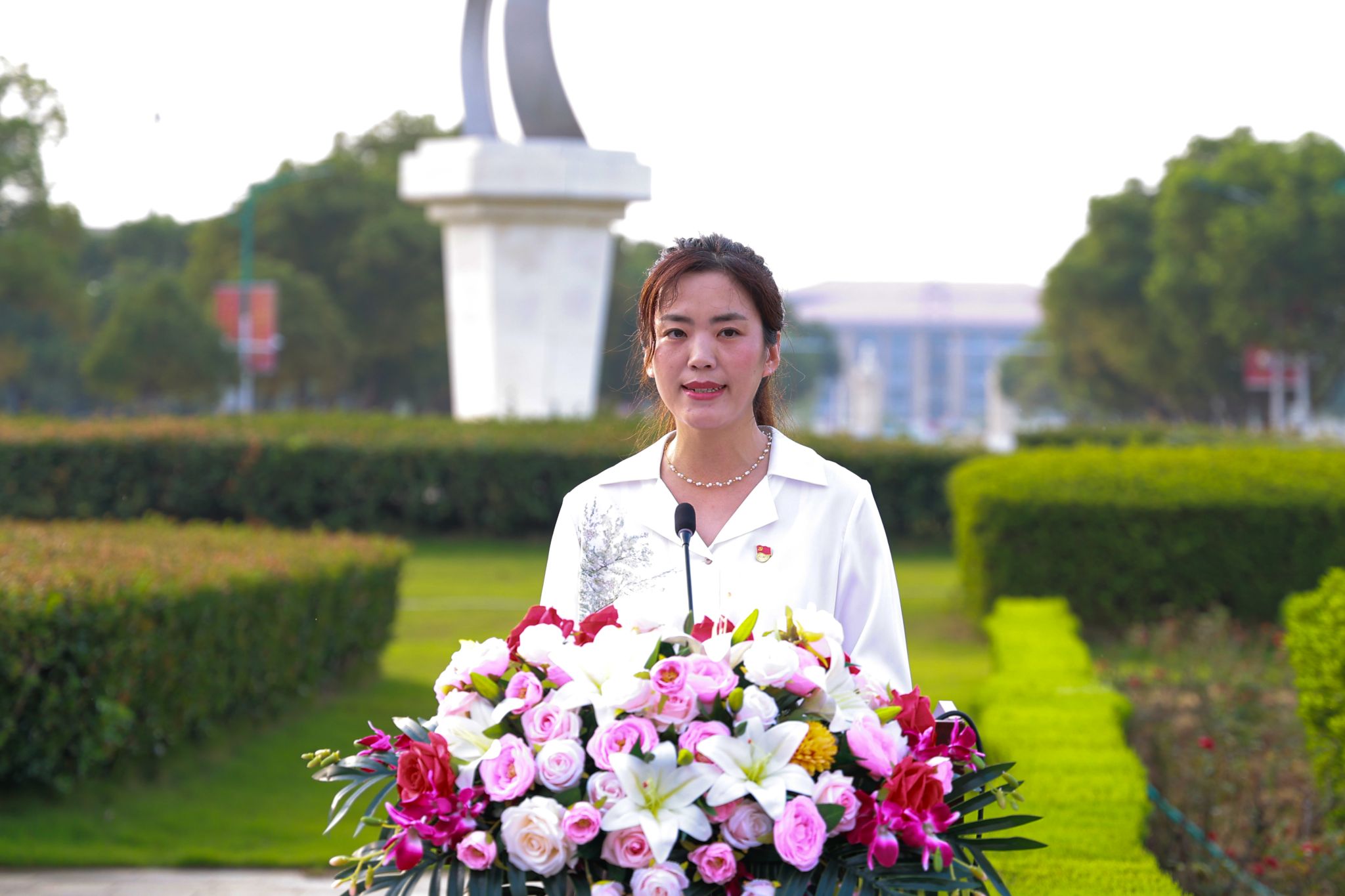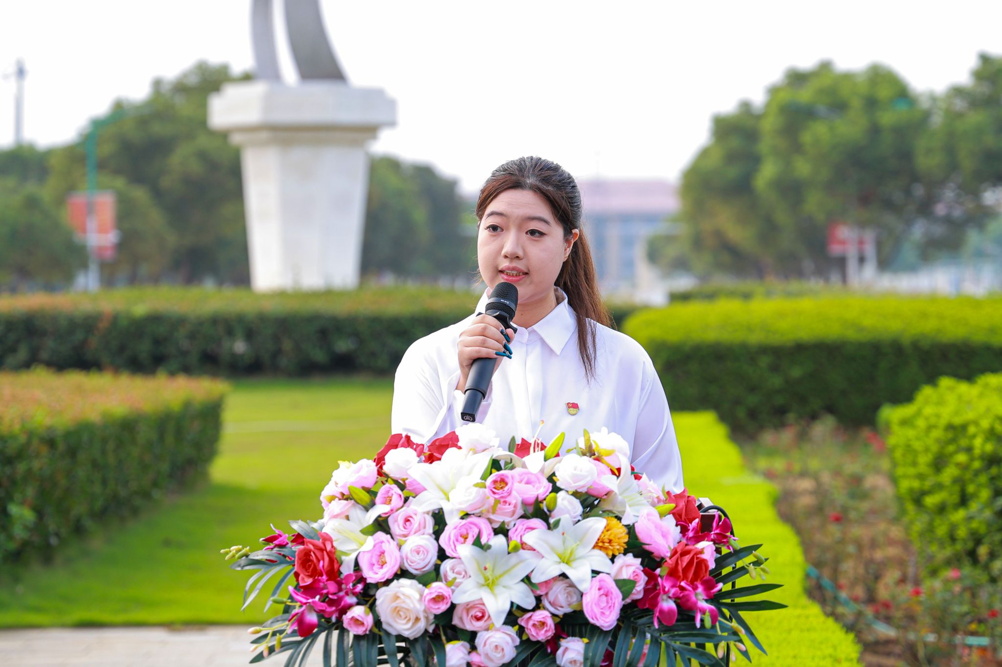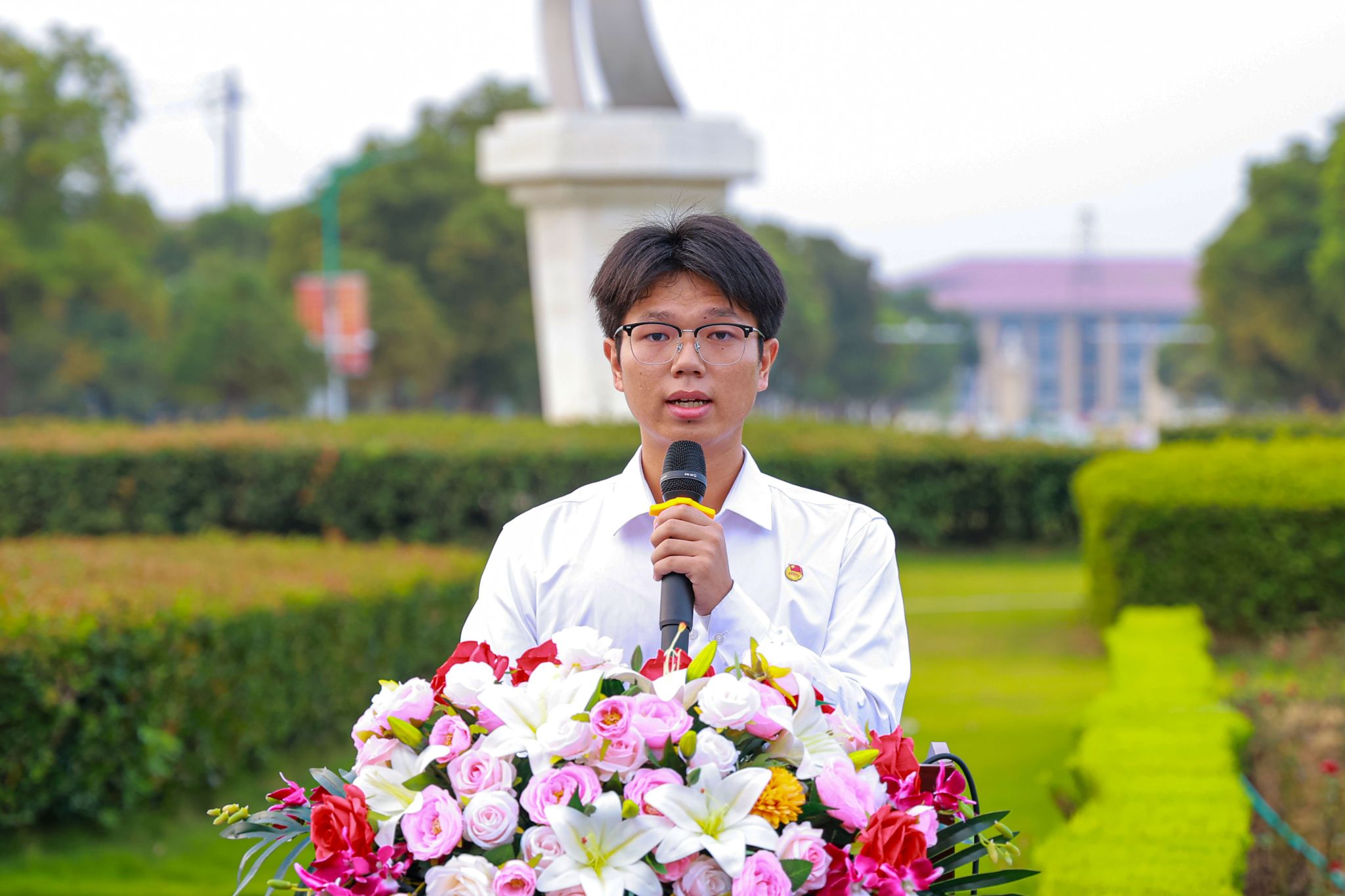 艺术设计学院24环艺本科2班崔静雨作为第十六期入团积极分子培训班新学员代表作表态发言。她表示,成为入团积极分子既是荣耀更是责任,未来将以培训为契机,认真学习团的历史与理论,筑牢思想根基,在学习与实践中锤炼本领,争取早日成为合格共青团员,以青春之我为中华人民共和国成立76周年献礼。
