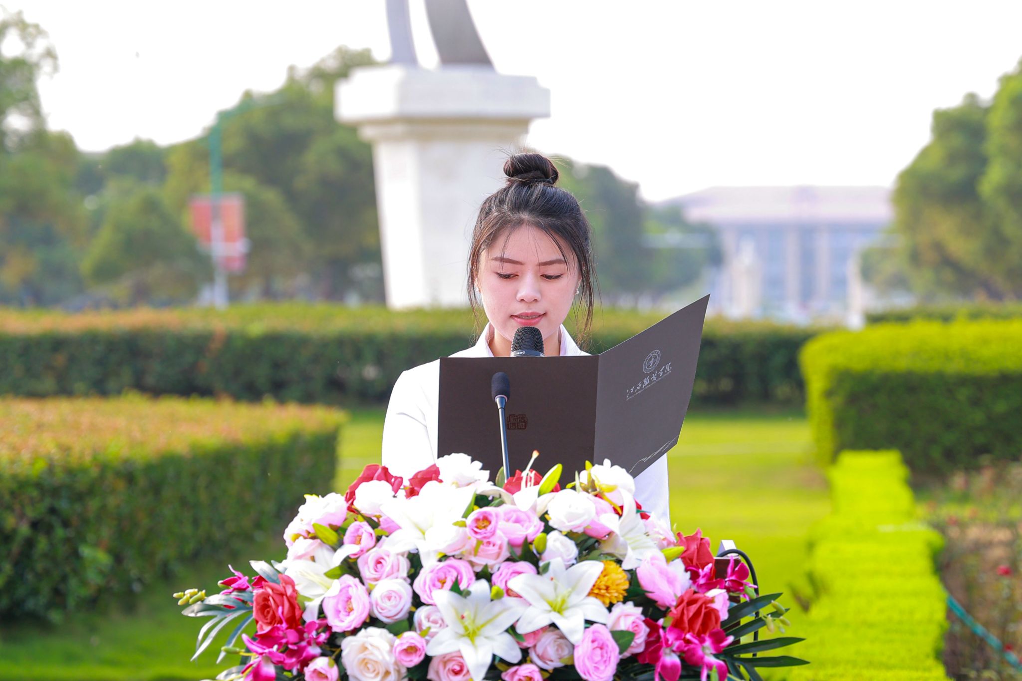 大学生艺术团语言表演队带来朗诵《青春向祖国报告》。学子们以激昂的语调、饱满的情感,诉说新时代青年与祖国同呼吸、共命运的赤子之心,将对祖国的深情告白融入字里行间,为现场师生传递青春奋进力量。