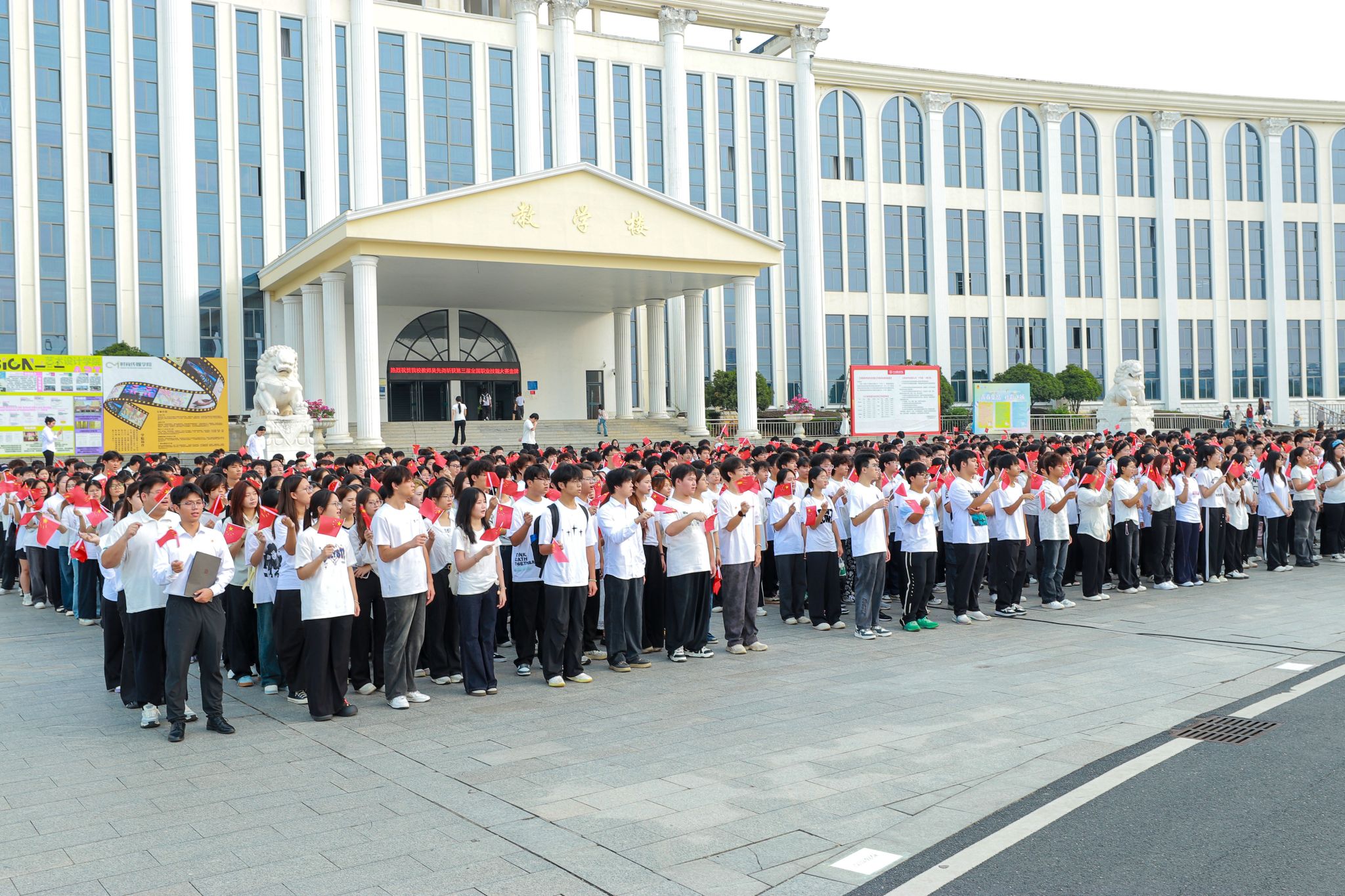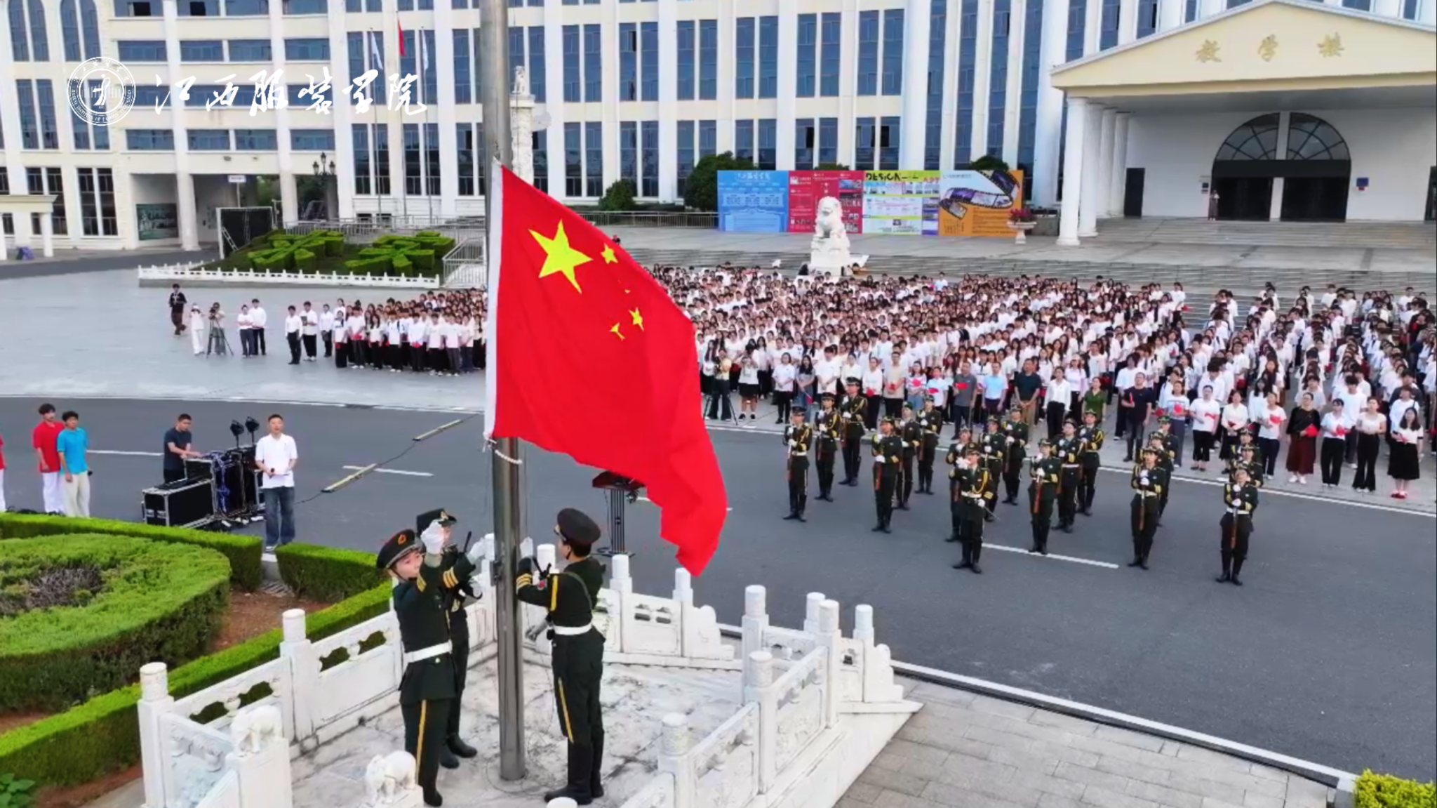 新闻中心讯(文字/万强 图片/钟宏鹏 颜冲)山河焕异彩,盛世启新章。为庆祝中华人民共和国成立76周年,进一步激发全校师生爱国热情,9月30日上午7时,我校在主教学楼前广场举行“礼赞76华诞 青春告白祖国”国旗下的思政课暨2025年秋季入团积极分子培训班开班仪式。校党委书记、督导专员林井萍,党委副书记唐新强,校团委等职能部门负责人,各学院党委书记(副)出席活动,校团委专职团干、各学院分团委(副)书记,第十六期入团积极分子培训班全体学员、校院两级主要学生干部及各学院师生代表共2000余人参加仪式,仪式由校团委指导老师张震主持。