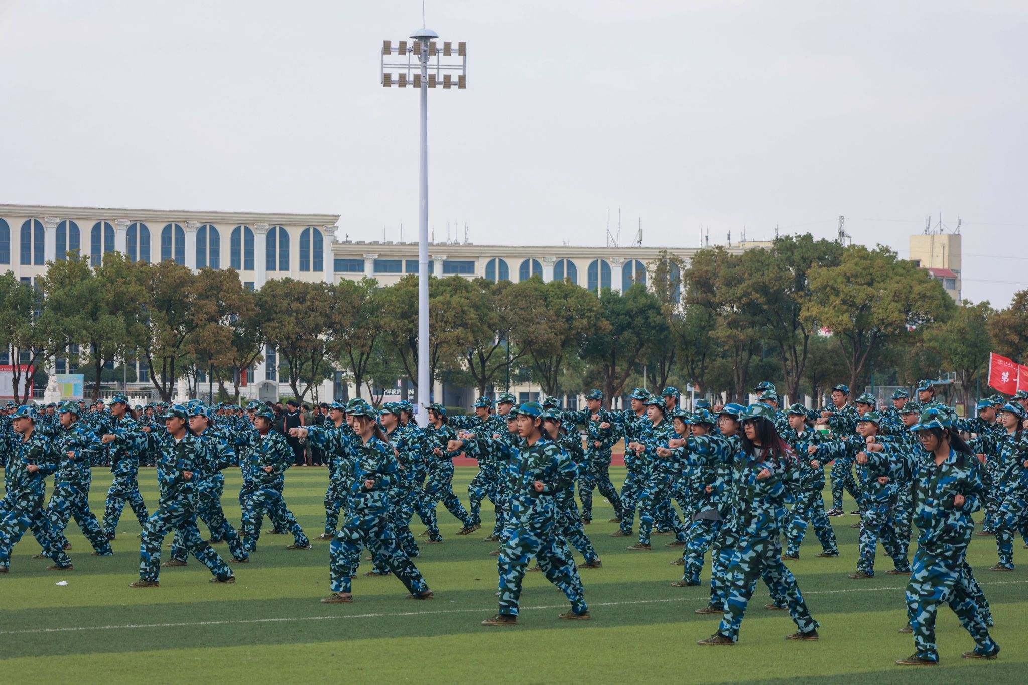 军训汇报表演开始,擒敌操方块阵出招迅速、攻防兼备,动作刚柔并济,一招一式有来有往;匕首操方块阵动作干脆利落,一套出鞘、弓步、上刺、侧刺等连招势如破竹;刺杀操方块阵步伐一致,动作干净利落,随指挥员一声令下,吼声如雷贯耳,震人心魄。随后开展的军事技能汇演精彩纷呈。擒敌拳刚劲有力,刺杀操杀气凛凛,匕首术英姿飒爽、高水平的战术军事项目表演将现场气氛推向高潮,田径场上掌声雷动,喝彩不断。