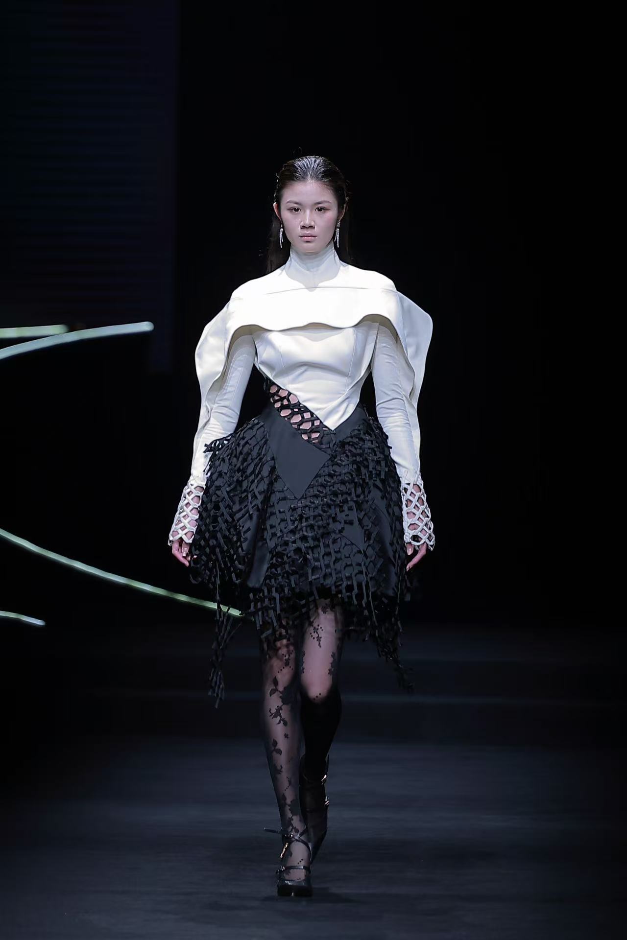 新闻中心讯(供稿/ 服装设计学院)霓裳宫内,灯光渐暗,一束追光落下,建筑般的硬朗轮廓与流动的柔美线条在T台上相遇,刚柔并济的设计语言娓娓道来当代时尚的新叙事。