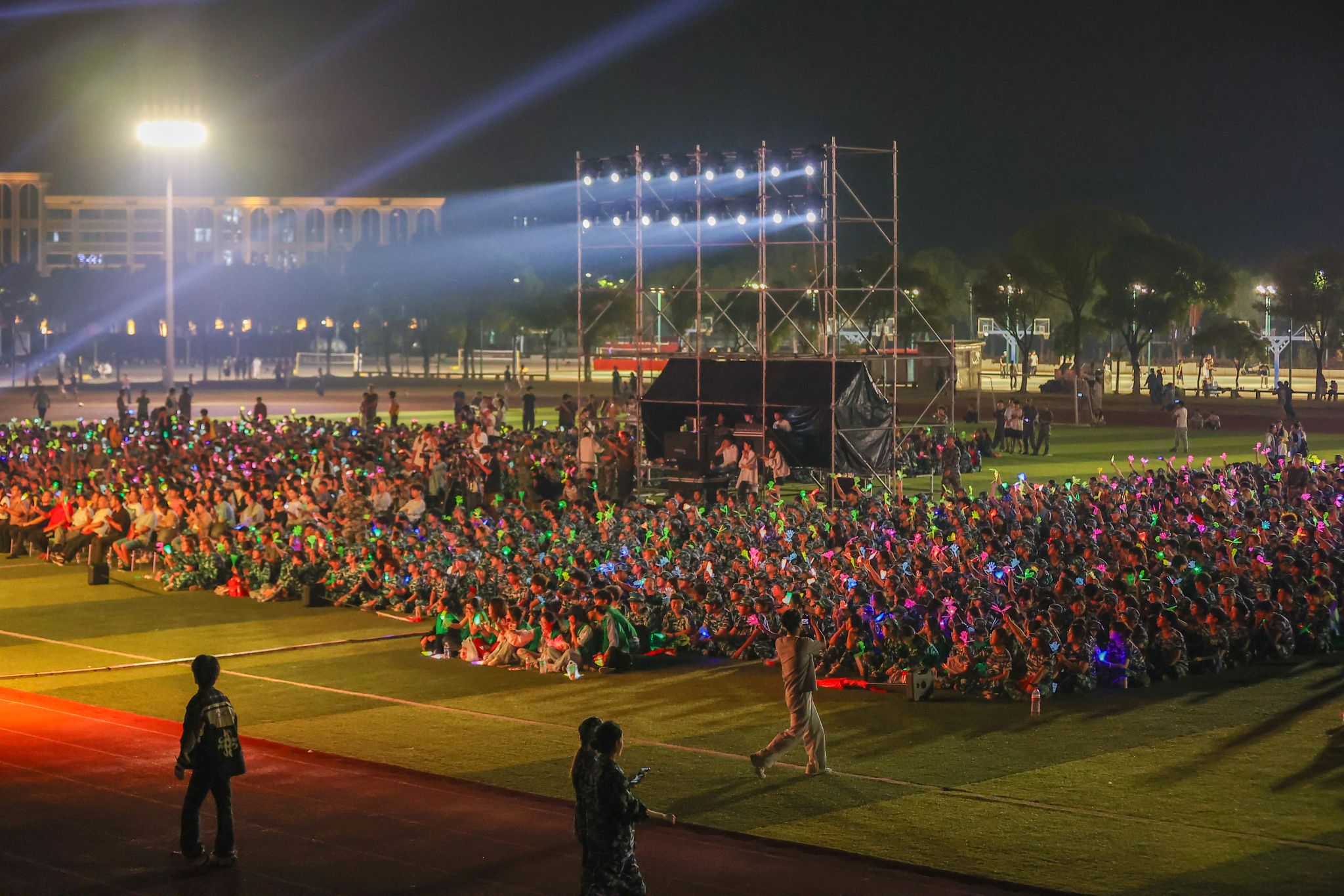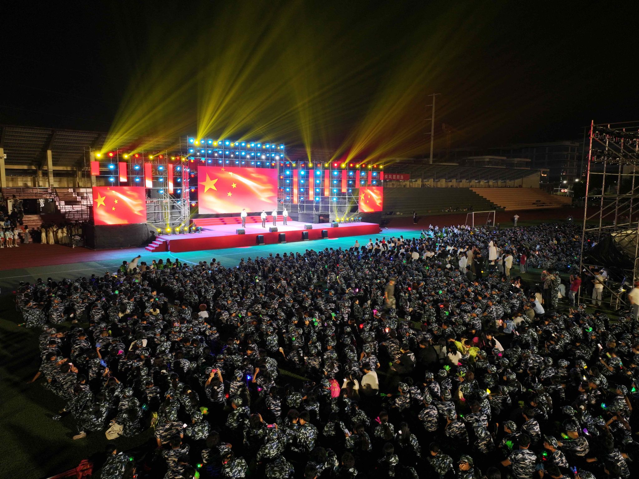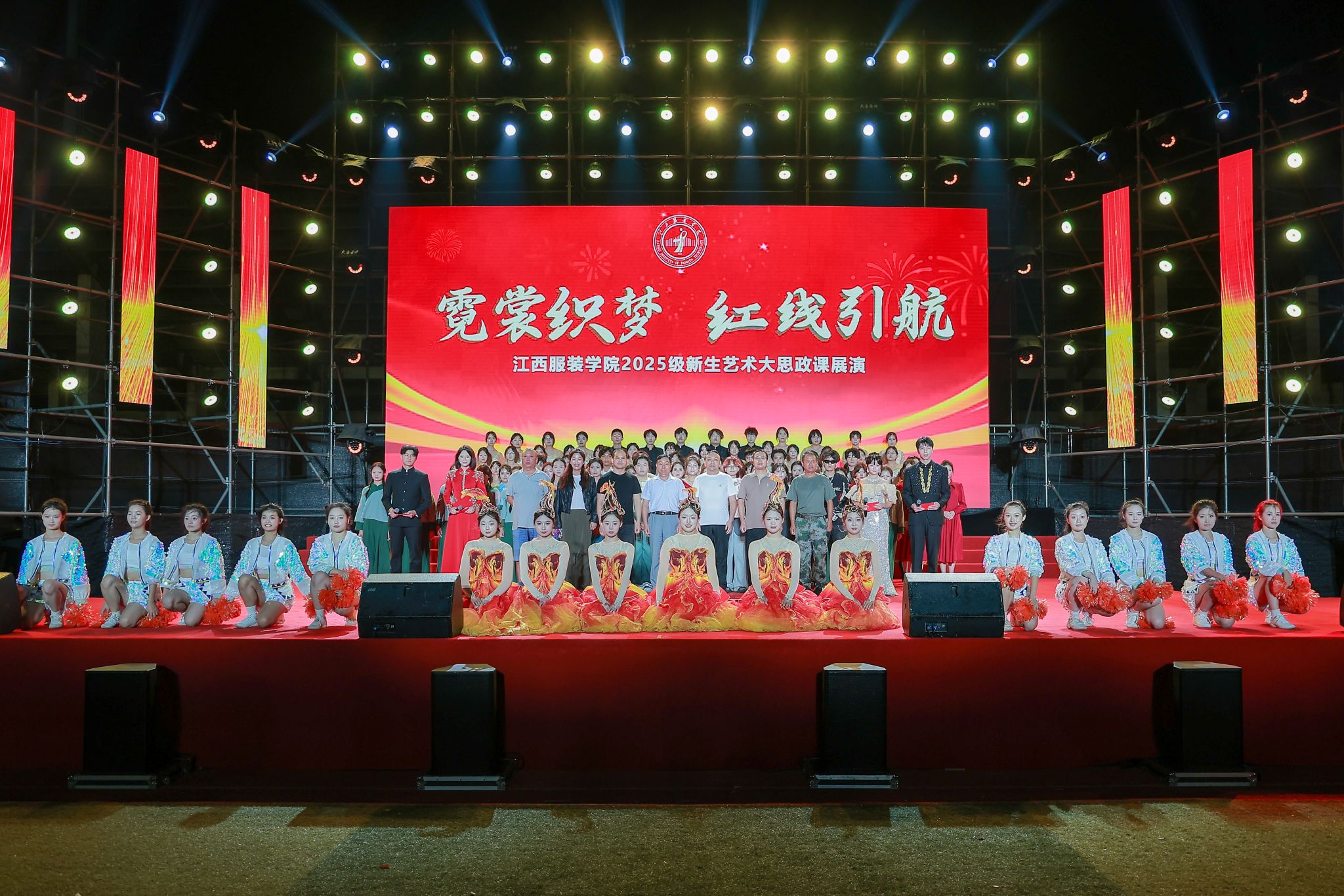新闻中心讯(文/丁晗艺 图/黄梓翔 颜冲 梅涛 刘毅 钟宏鹏)秋风送爽霓裳舞,青春向党正当时。10月16日晚,由校团委主办,党委宣传部、人民武装部、军事体育教学部协办的“霓裳织梦 红线引航”2025级新生艺术大思政课展演在田径场精彩上演。校长薛家宝,党委副书记、副校长李宝君,党委副书记唐新强,以及来自各学院、各部门的老师与2025级新生欢聚一堂,共同观看了这场融艺术审美与思政教育于一体的迎新盛宴。