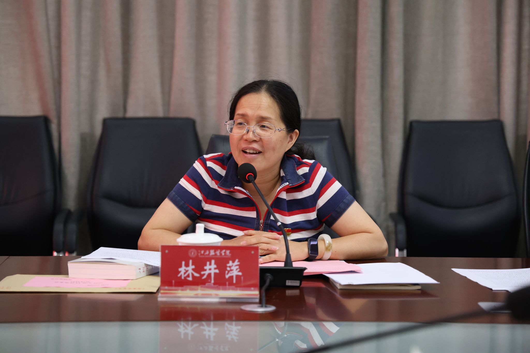 林井萍在总结讲话中对洪恩强部长的点评指导表示衷心的感谢。林井萍指出,要提高思想认识,深刻领会《习近平谈治国理政》第五卷的核心要义与时代价值,要从中汲取团结奋进的智慧和力量,不断增强推进现代化建设的历史主动精神和政治自觉,以为党育人、为国育才的实际行动把“两个维护”落到实处;要精心组织部署,持续掀起学习宣传贯彻的热潮,全校各级党组织要把《习近平谈治国理政》第五卷和第一卷至第四卷作为一个整体贯通学习,推动党的创新理论进课堂、进头脑,真正实现学思用贯通、知信行统一。要坚持学用结合,推动学习成果向发展实效转化。要坚持学以致用、用以促学,紧紧围绕教育强国建设实践要求和江西省“1269”行动计划部署,统筹推进教育、科技、人才融合发展,切实将理论学习成效转化为谋划工作的思路、推动学校事业高质量发展的举措。