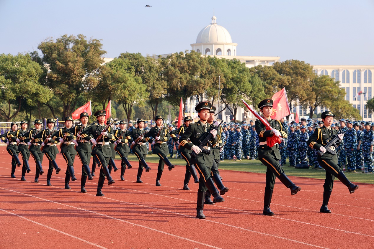 唐新强作动员讲话。他代表学校向承训官兵致以衷心感谢,向全体新生致以亲切问候。他强调,开展大学生军事训练是全民国防教育的重要组成部分,是落实立德树人根本任务和强军目标根本要求的重要途径。在纪念中国人民抗日战争暨世界反法西斯战争胜利80周年、新中国成立76周年的特殊历史节点开展军训,具有深远意义。他向同学们提出三点希望:一是弘扬抗战精神,传承红色基因,以实际行动践行抗战精神,将其转化为克服困难、追求卓越的动力;二是厚植爱国情怀,担当时代重任,将军人作风融入日常,以真才实学服务社会、报效国家,体现新时代青年的使命与担当;三是锤炼意志品质,书写青春篇章,培养严守纪律、团结协作、勇于突破的优良品质,高质量完成训练任务,展现江服学子的优秀风貌。