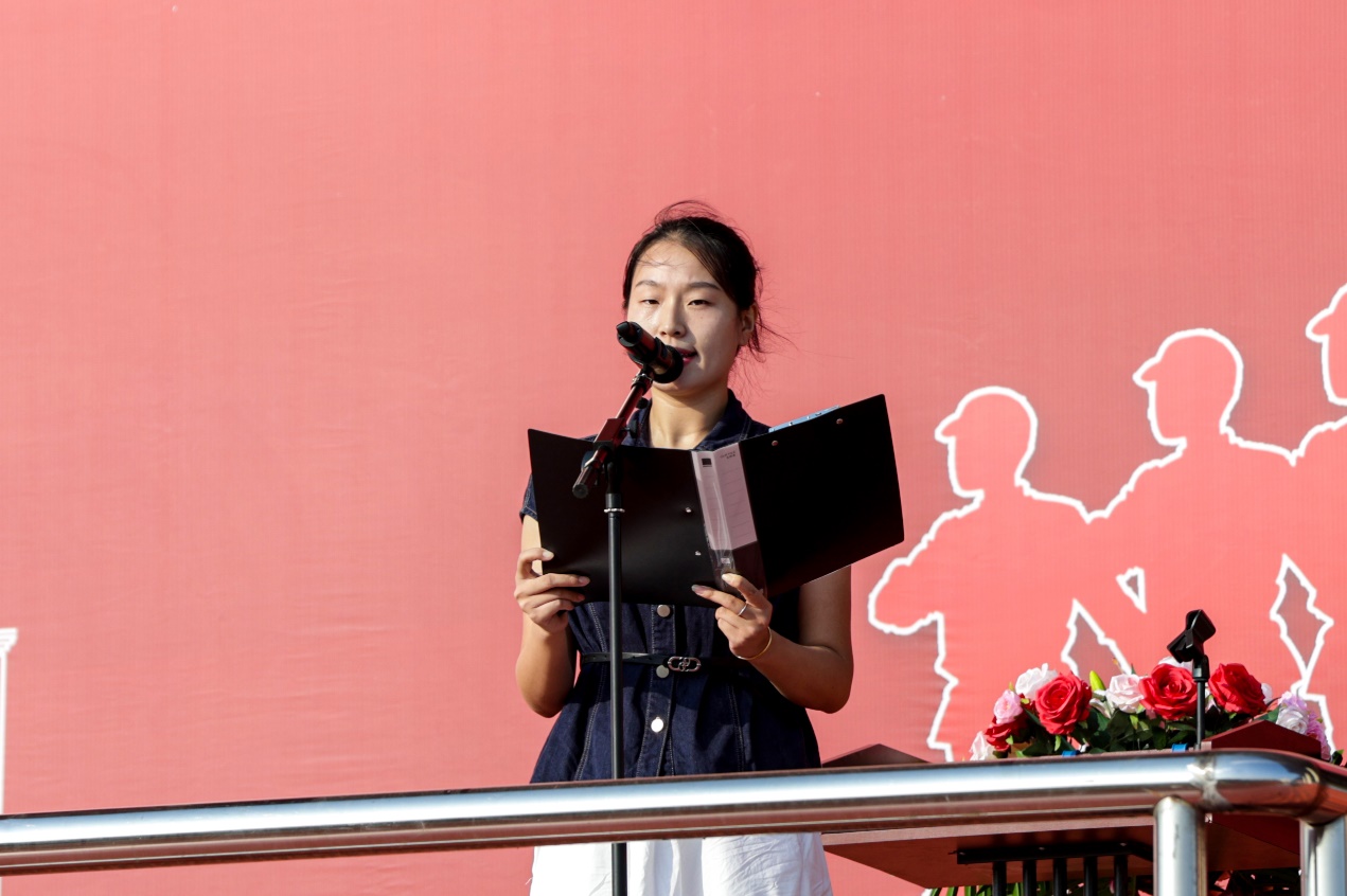 25级服装设计与工程2班余秋璇同学代表全体新生发言。她表示,将以饱满的热情和昂扬的斗志投入军训,虚心向教官学习,严格遵守纪律,克服困难、刻苦训练,在迷彩方阵中书写青春风采,不辜负学校与家长的期望。