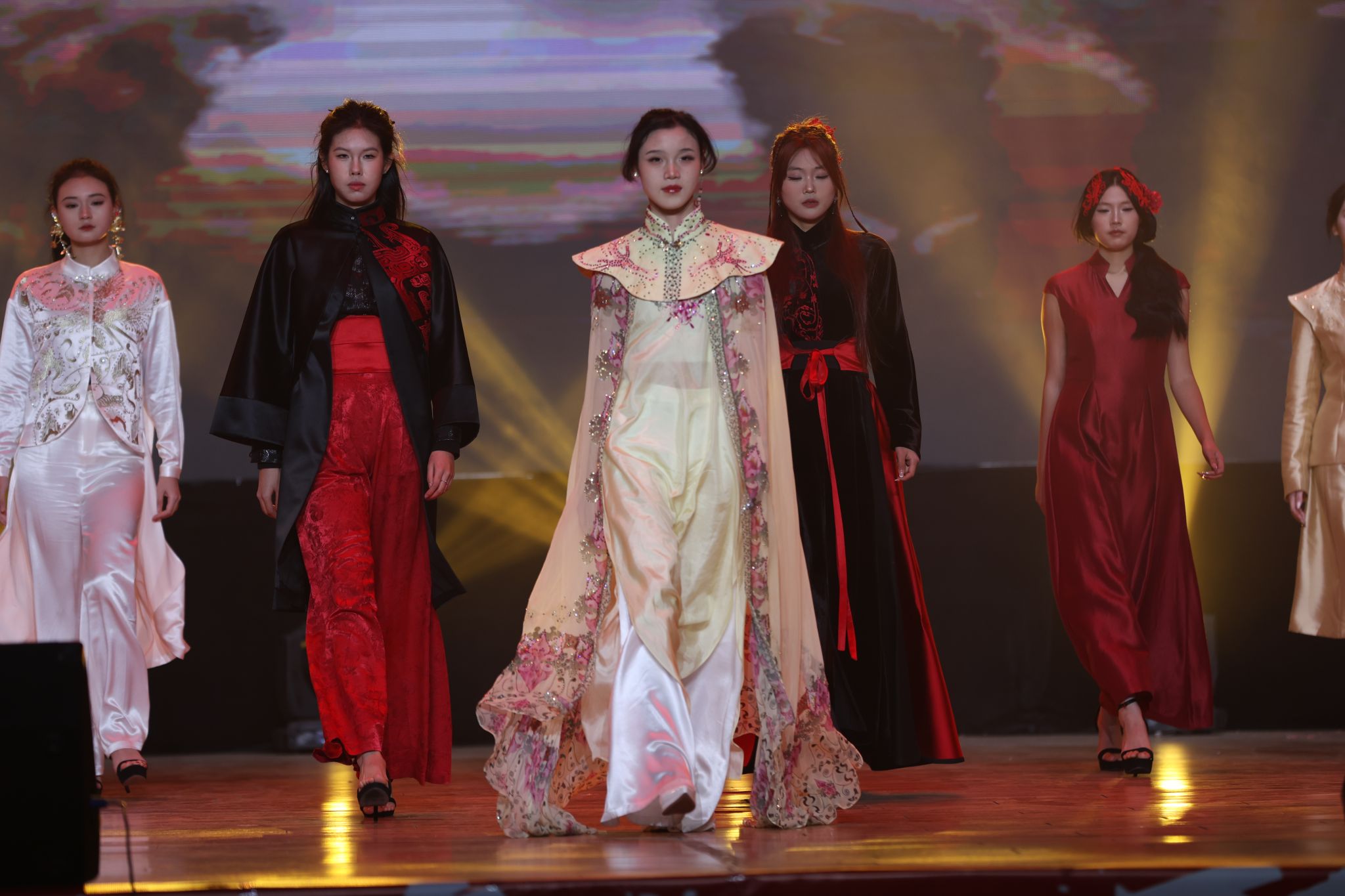 第二篇章“红韵传声情寄山河”聚焦家国情怀与青春风采。二胡齐奏《战马奔腾》弓弦翻飞、气势如虹,勾勒出沙场万马奔腾的壮阔景象;朗诵《如果没有李白》以声为舟,带领观众穿梭于盛唐诗意之中,语言温情且富有想象力;舞蹈《青春大中国》舞步铿锵、神情昂扬,展现出青春与祖国共成长的蓬勃气象;健美操《灯火里的中国》光影流转、身姿跃动,用活力与健美勾勒出温暖祥和的家国画卷;走秀《溯》步履生风,将传统服饰韵味与现代时尚元素完美融合,在T台上书写出文化自信的当代篇章。