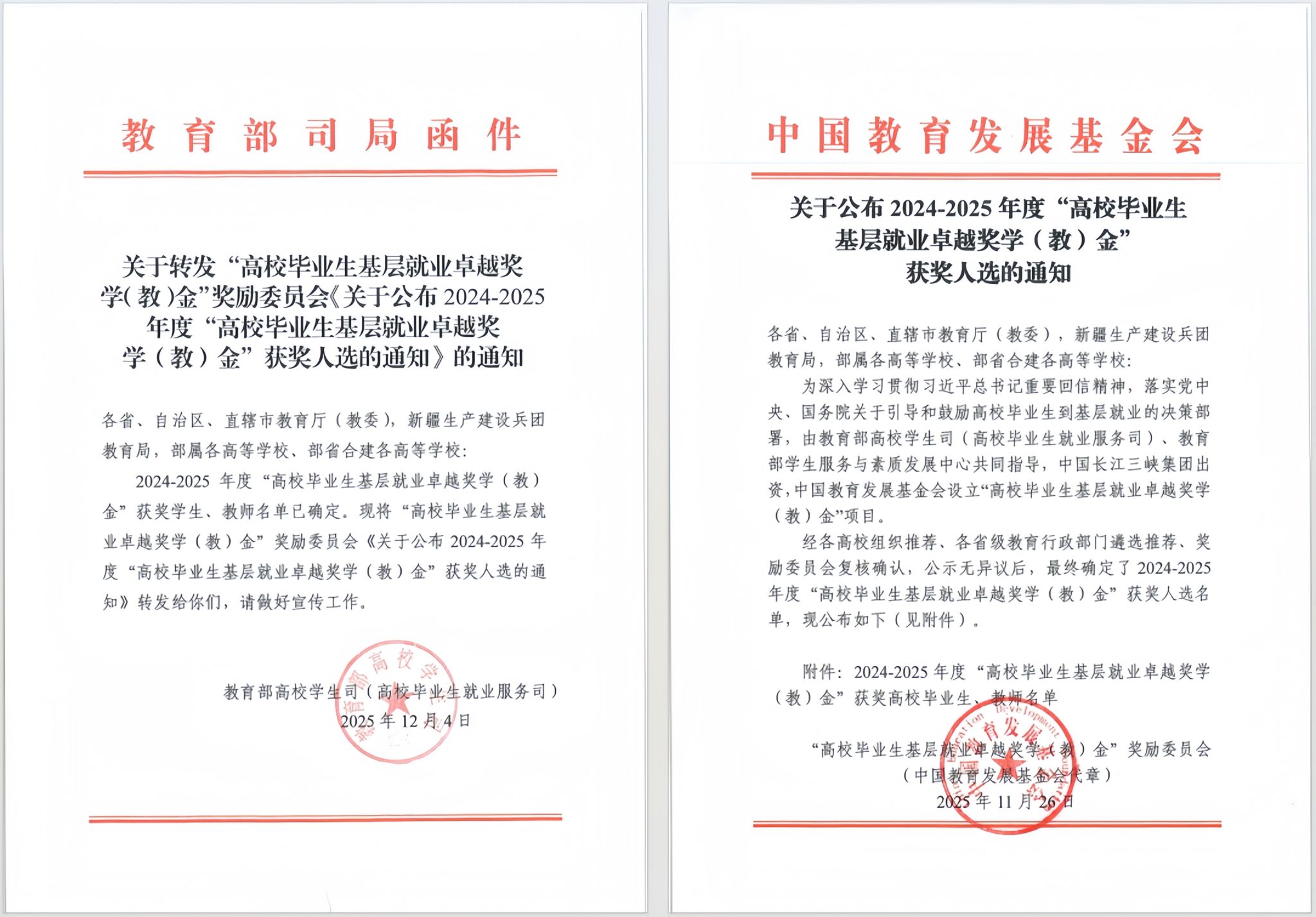 “高校毕业生基层就业卓越奖学(教)金”由教育部高校学生司(高校毕业生就业服务司)、教育部学生服务与素质发展中心共同指导,中国长江三峡集团有限公司出资,中国教育发展基金会特设,旨在贯彻落实党中央、国务院关于引导和鼓励高校毕业生到基层就业的决策部署,奖励赴基层就业并做出突出业绩的普通高校毕业生,以及普通高校中指导服务大学生赴基层就业工作有突出贡献的教师。本年度全国共评选出“高校毕业生基层就业卓越奖学金”418人。