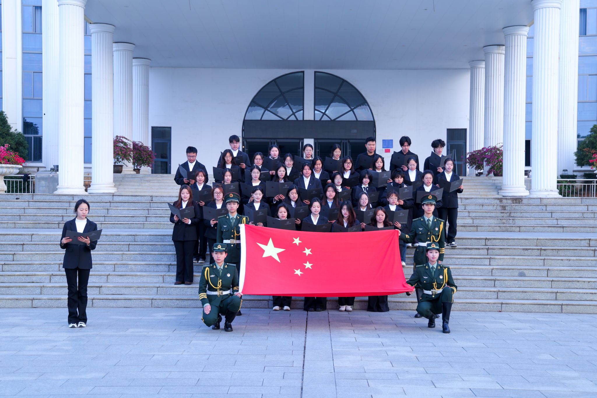 新闻中心讯(文/何淑颖 素材供稿/江服新青年普法协会、服装设计学院、服装工程学院、艺术设计学院)12月4日是我国第十二个国家宪法日。为深入学习贯彻习近平法治思想,弘扬宪法精神,增强师生法治观念,江西服装学院江服新青年普法协会第二届“宪法晨读+宣誓”品牌活动在主教学楼前广场举行,正式拉开了“学宪于心,践宪于行”宪法宣传周系列活动的帷幕。活动由校党委宣传部、校团委指导,江服新青年普法协会承办,各学院普法分会协办,旨在营造尊崇宪法、学习宪法、遵守宪法、维护宪法、运用宪法的浓厚校园氛围,彰显学校依法治校的坚实步伐。