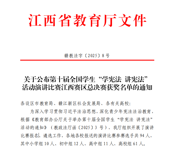 普法协会成员连续两年在省教育厅举办的全省学生“学宪法 讲宪法”演讲比赛中获得二等奖,在法治素养竞赛中获得三等奖,同时,学校被评为“优秀组织奖”。师生防诈骗意识显著提高,校园内发生的诈骗案件数量明显下降,去年同比下降50%。