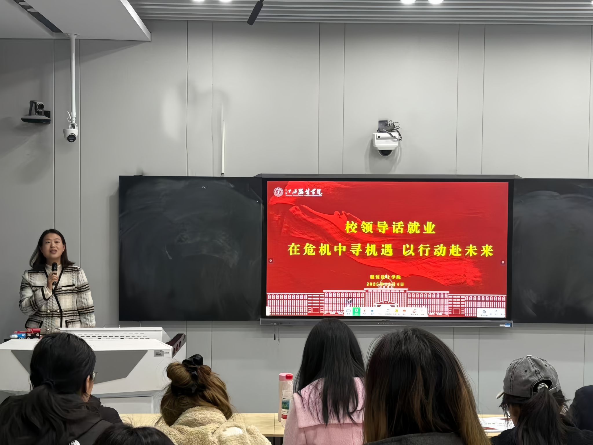 新闻中心讯(供稿/服装设计学院)为进一步加强就业指导服务,强化就业育人,转变毕业生就业观念,树立正确的就业观、择业观,掌握求职技巧,提升就业自信心。12月4日,校领导尚钢深入服装设计学院开展“校领导话就业”活动。活动以“在危机中寻机遇以行动赴未来”为主题,特别邀请2011级优秀校友、上海黑狮服饰创始人刘玉婷返校,分享服装设计行业就业趋势、创业实操经验与职业发展心得,引导2026届毕业生认清就业形势、明确发展方向、优化就业观念、抢抓就业机遇,为毕业生精准赋能。活动由服装设计学院党委书记蓝岚主持。