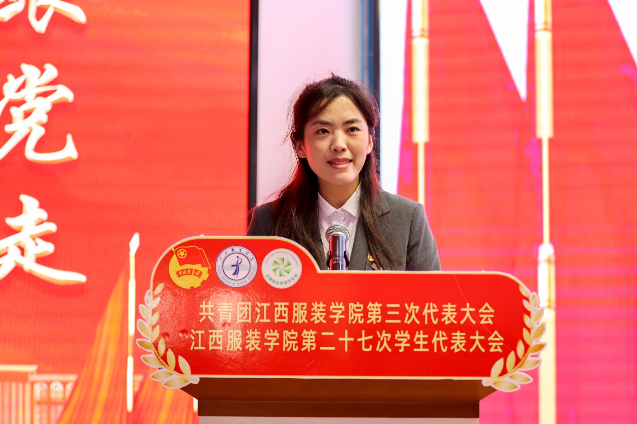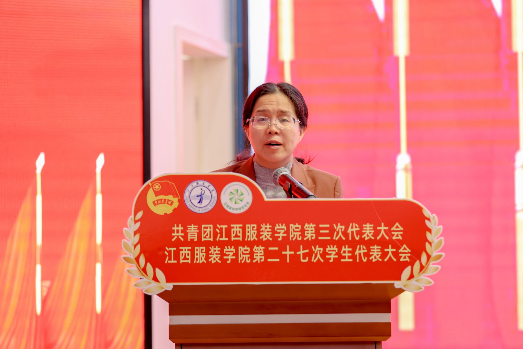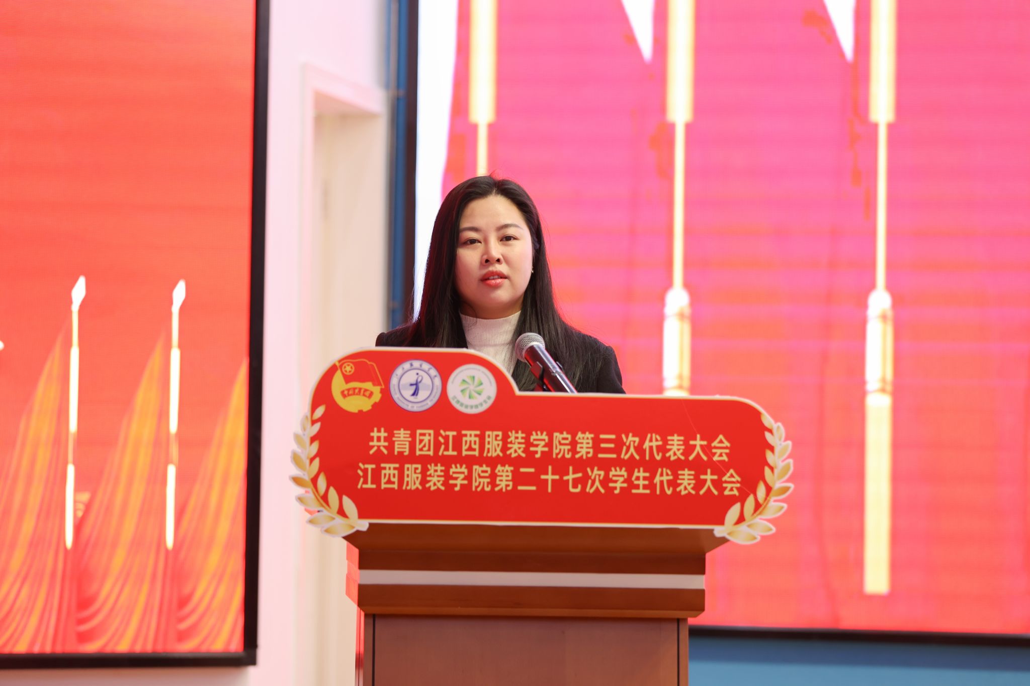 新闻中心讯(供稿/校团委)11月22日,共青团江西服装学院第三次代表大会、江西服装学院第二十七次学生代表大会在思贤楼三楼报告厅召开。校党委书记林井萍、团南昌市委副书记万琪出席会议并讲话,华东交通大学团委书记罗伟代表兄弟高校致辞,校工会副主席廖小华致开幕辞。校党委副书记唐新强、党委委员组织部部长陈翠娥、党委委员宣传部部长沈新建、团县委书记殷凌云、学校相关职能部门负责同志、各学院党委书记(副)出席会议。