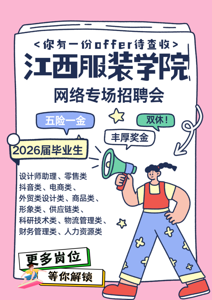 10月31日至11月4日,学校联合中国服装人才网举办“纺织服装产业链专场网络招聘会”。江苏沭宁美居科技股份有限公司、福州融裕行纺织织造有限公司、浙江屹男集团等多家知名企业参与,聚焦行业转型趋势,集中发布数字化专员、智能AI工程师、精益管培生等一批新兴智能岗位,打造“互联网+就业+新智能岗位”精准对接平台,有效拓展毕业生就业选择空间。