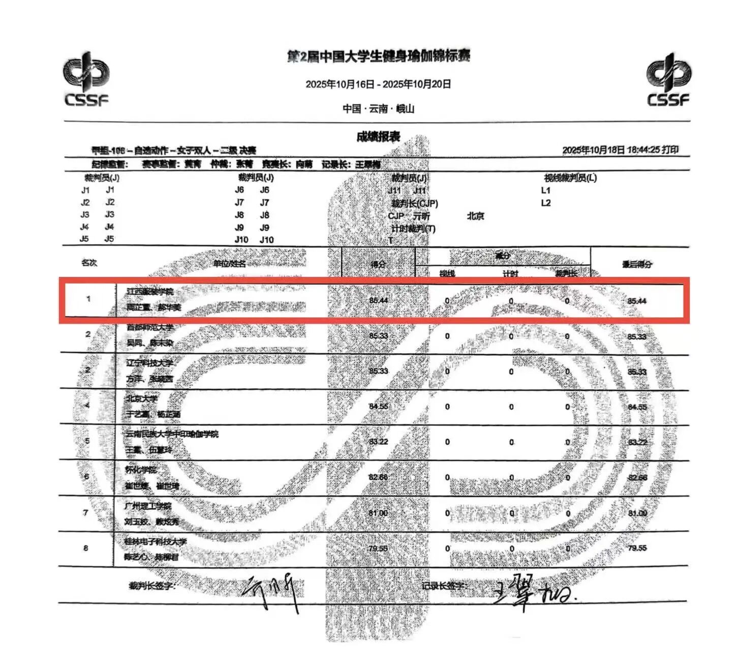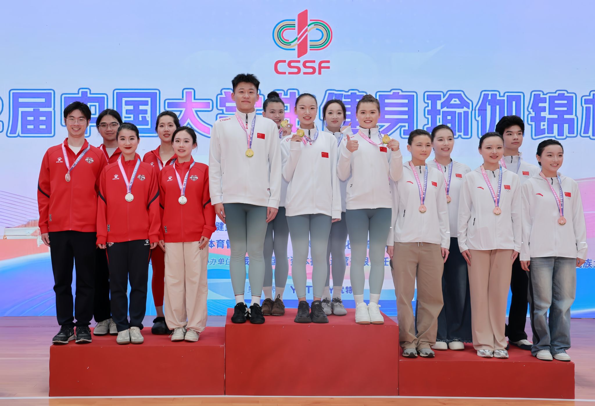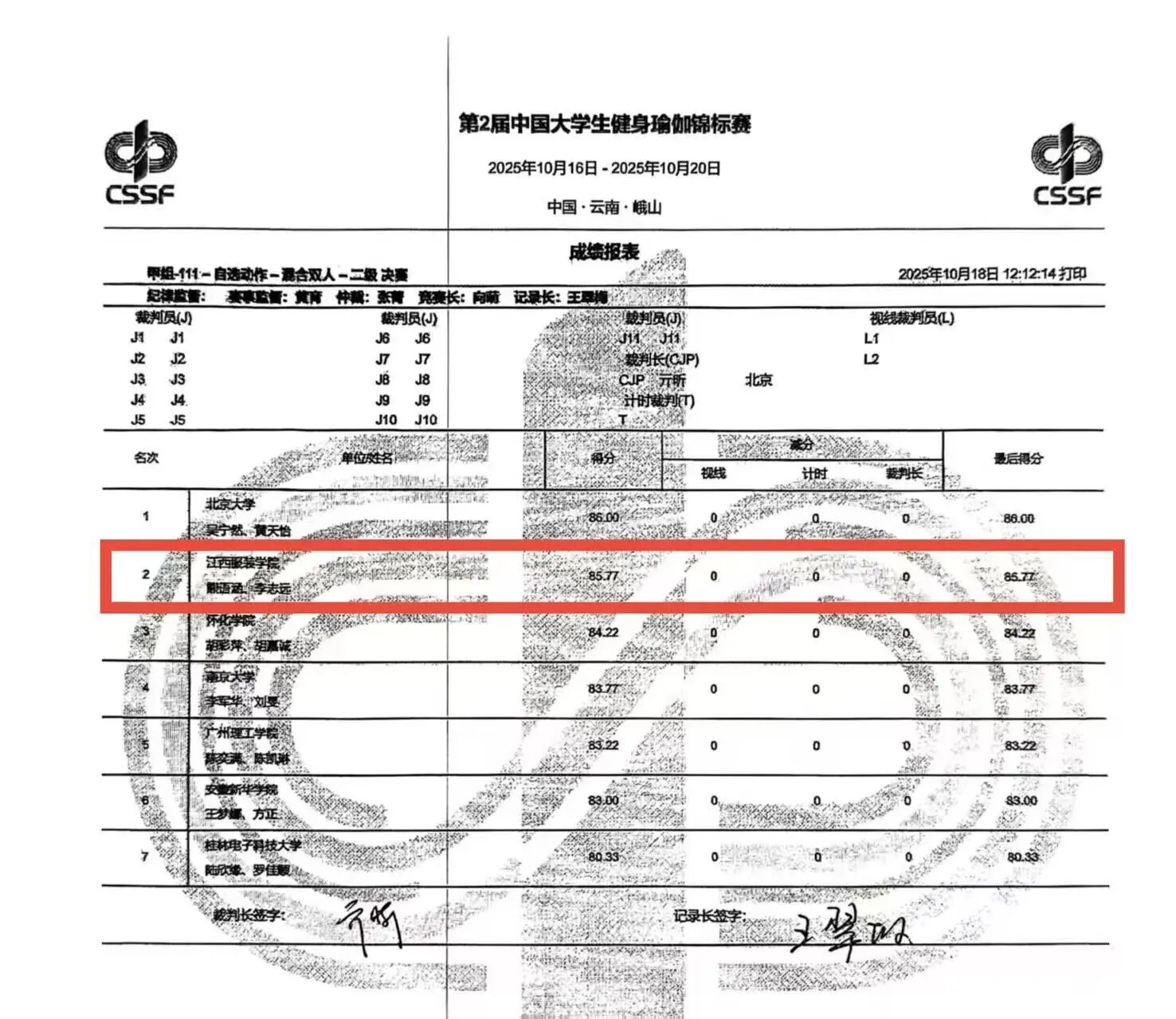 新闻中心讯(供稿/军事体育教学部)金秋送爽,捷报频传。10月15日至20日,由中国学生体育联合会主办的2025年中国大学生健身瑜伽锦标赛在云南峨山举行。我校瑜伽代表队奋勇拼搏、表现卓越,最终斩获本科甲组二级女双冠军、混双亚军、小集体季军的优异成绩,为学校赢得荣誉,充分展现了江服学子昂扬向上的精神风貌。