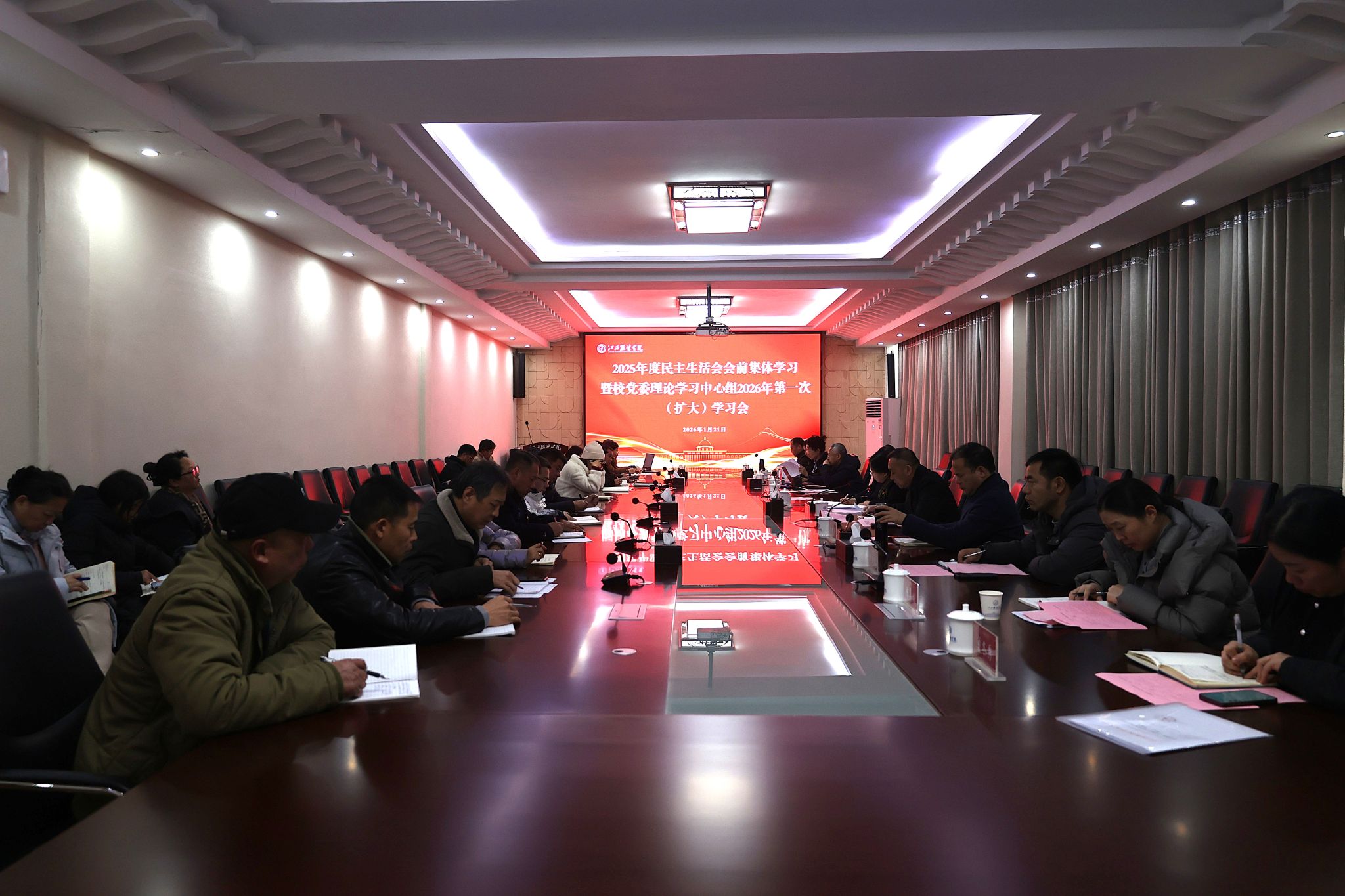 新闻中心讯(文/龙瑞行 图/丁晗艺)1月21日,我校召开2025年度民主生活会会前集体学习暨校党委理论学习中心组2026年第一次(扩大)学习会,深入学习贯彻习近平总书记关于党的建设的重要思想、关于党的自我革命的重要思想和关于加强党的作风建设的重要论述,重点学习习近平总书记在中央政治局民主生活会、二十届中央纪委五次全会上的重要讲话精神,为开好2025年度民主生活会打牢思想基础。校党委书记林井萍主持会议并讲话。