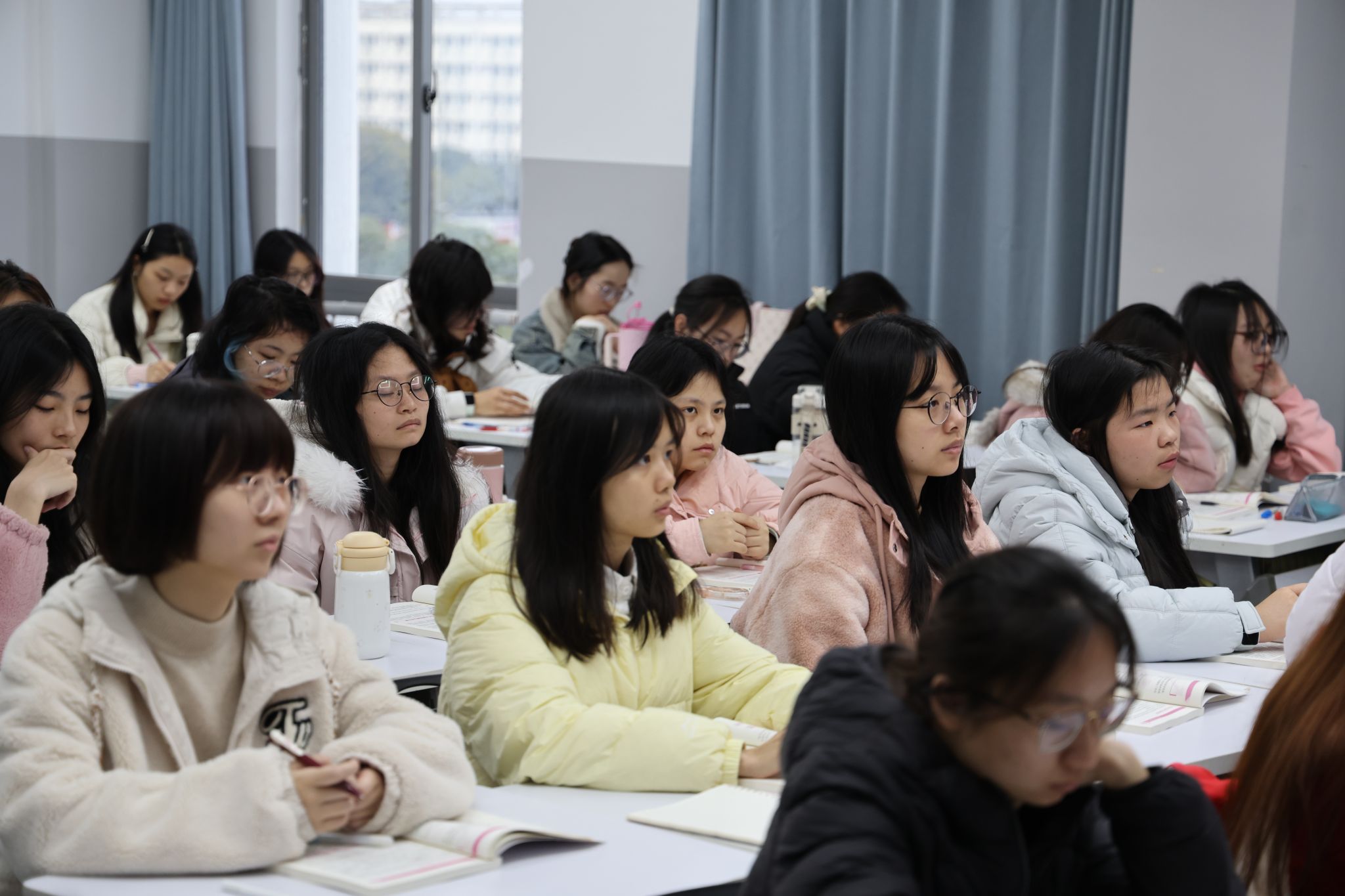 清晨,久违的阳光洒满校园,上课铃响起,教学楼恢复了往日的活力。教室里,崭新的课本整齐摆放,同学们有的托腮沉思,有的飞速记着笔记,那专注的神情,是对知识最虔诚的模样。琅琅书声与校园里的春日气息相融,为新学期拉开序幕。