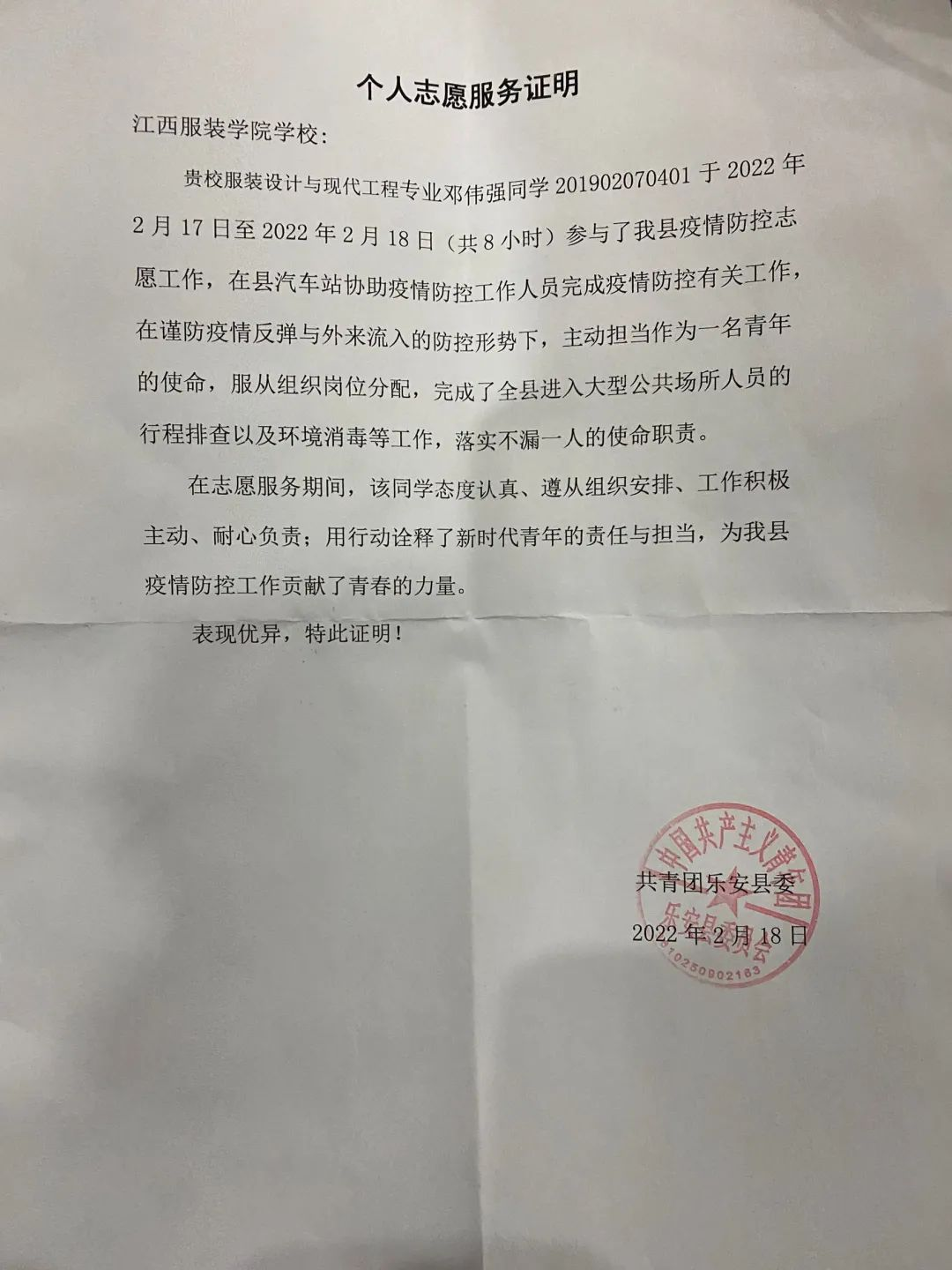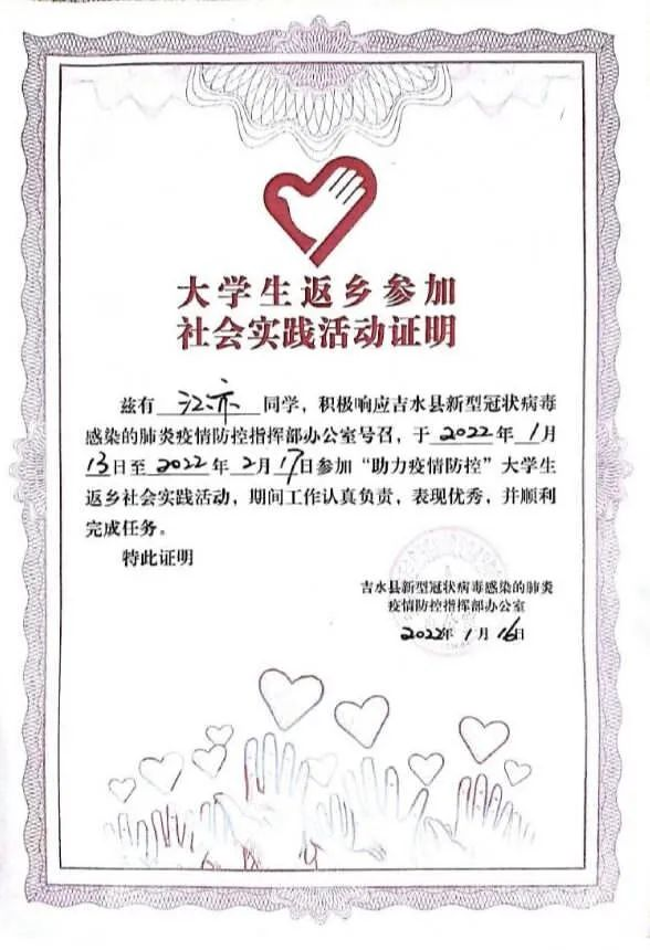 服装工程学院讯(撰稿 许诺)2022年寒假期间,新冠疫情又一次出现了反弹,服工学子回到家乡后,积极参与社会实践活动,争做家乡疫情防控志愿者,诸多学子受到了当地社区的表扬。