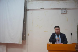 辅导员代表王盼星就建设平安校园进行发言,他表示,平安建设的重点就是树立大家的安全意识观念,营造稳定和谐文明的健康校园生活环境。并详细介绍了学生在校如何防护,避免危险。辅导员应引导学生积极向上的生活和学习,老师与学生一起营造出健康平安的校园生活。
