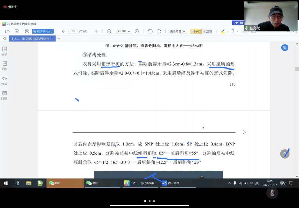 19时装本科6班的蒋李婧表示,张教授作为服装设计与工程专业学科带头人、中国服装业权威专家,讲课幽默风趣,平易近人,同时在疫情再度泛滥之时,即使年事已高、身体抱恙也坚持为我们上课,从张教授那充满了对服装行业热爱的双眼中我深刻感受到了张教授爱岗敬业、乐于施教的精神,我为其深深感动,同时由衷对张教授充满了尊重与敬佩之情。在经历了这两天这学习后,我对男装结构设计有了更进一步的认识与领悟,这得益于张教授细致入微的讲解。