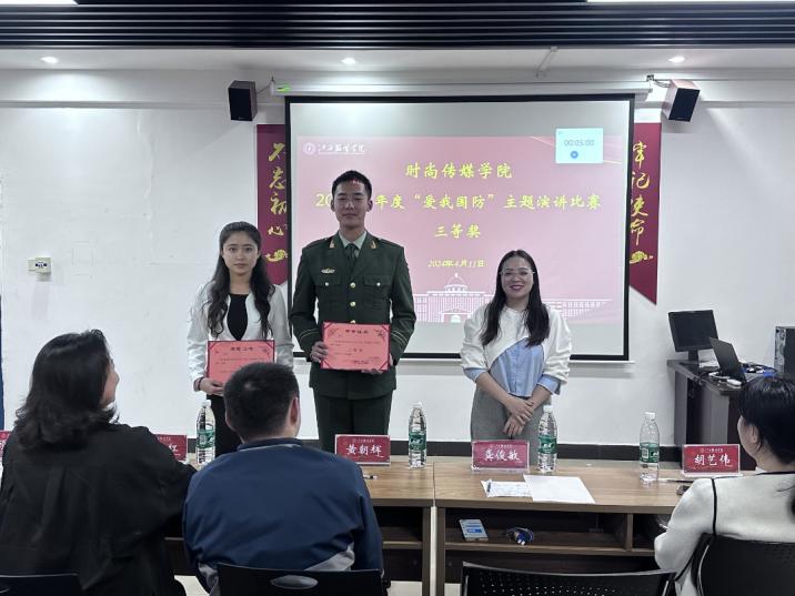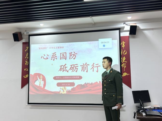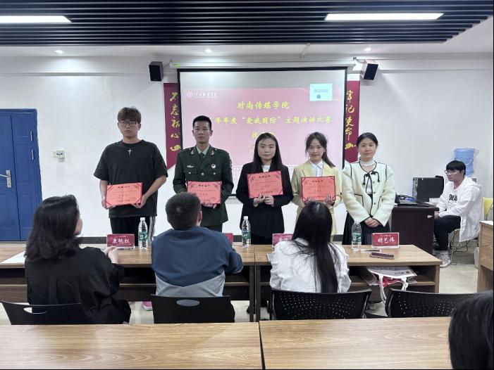时尚传媒学院讯为深入学习贯彻习近平强军思想,推动新时代全民国防教育工作的深入普及。时尚传媒学院于2024年4月11日隆重举行“爱我国防”主题演讲比赛。参加此次比赛的领导老师分别有时尚传媒学院党委副书记黄朝辉老师,时尚传媒学院康红艳老师、胡艺伟老师、龚俊敏老师以及顾成龙同学担任评委。