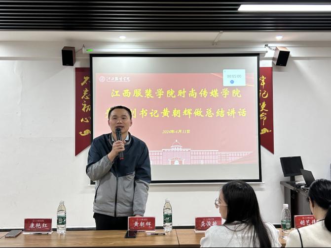 最后,由时尚传媒学院党委副书记黄朝辉同志进行总结讲话,黄朝辉副书记指出,本次比赛的成功举办,不仅锻炼了同学们的临场表现能力和表达能力,更彰显了当代大学生对于我国国防的态度,有利于更好地以青春之力为我国国防事业添砖加瓦。