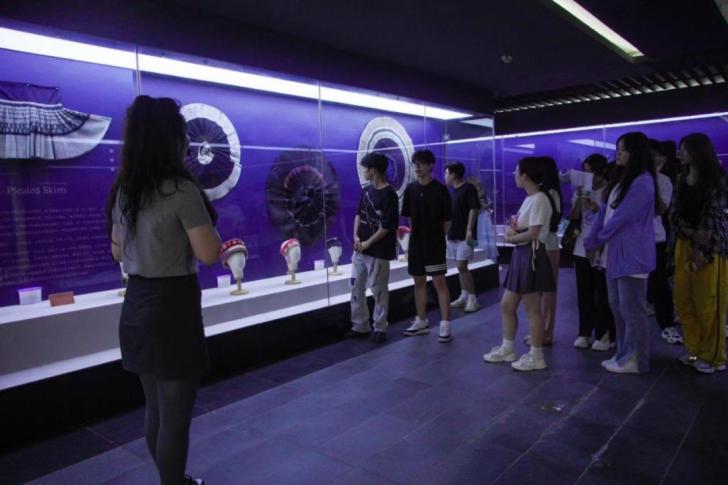 活动伊始,参与活动的师生们在中华服饰博物馆集合,由带队老师向同学们进行介绍与解说。带队老师从原始社会的皮毛服装开始,不断向现代推进,随着时代的变化,我们的服饰类型也在不断变化。