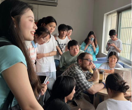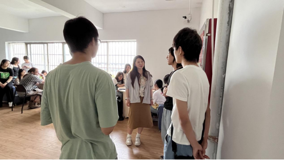 随后,进入自由交流环节。学生们可以在现场自由走动,与不同小组的同学进行交流,分享自己的观点以及经历,外教Matthew、校英语协会指导教师甘霖、熊玲老师根据学生现场交流的情况引导学生积极表达以及分享自身的经历和观点。这一环节不仅让学生们有机会结识更多志同道合的朋友,还让他们有机会与外教进行面对面的交流。现场气氛热烈,充满了青春的活力。
