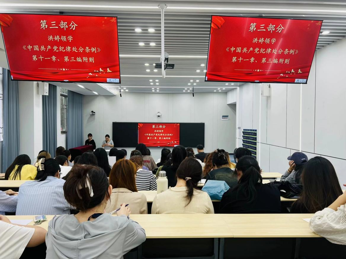 随后,洪婷逐字逐句讲解了《中国共产党纪律处分条例》第11章、第三编附则内容。洪婷强调,作为一名党员应当心怀“国之大者”,切实把自己摆进去、把职责摆进去、把工作摆进去,始终立足岗位履职尽责、担当作为。