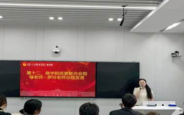 最后,班委联合会指导老师罗玲做出总结发言,她肯定了过去一学年中班委联合会全体成员的突出表现,他们恪尽职守、无私奉献、锐意进取,并成功开展了一系列成效显著的工作。此外,罗玲老师还对新学期班委联合会的发展提出新要求、新方向,这些建议旨在推动商学院班委联合会的工作迈上一个崭新的台阶。
